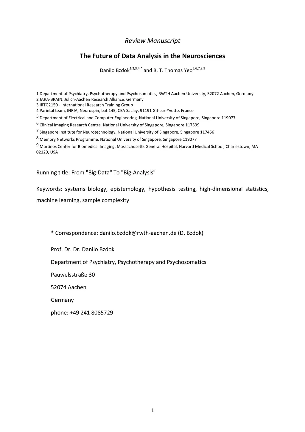 Neuroscience is undergoing faster changes than ever before. Over 100 years our field qualitatively described and invasively manipulated single or few organisms to gain anatomical, physiological, and pharmacological insights. In the last 10 years neuroscience spawned quantitative big-sample datasets on microanatomy, synaptic connections, optogenetic brain-behavior assays, and high-level cognition. While growing data availability and information granularity have been amply discussed, we direct attention to a routinely neglected question: How will the unprecedented data richness shape data analysis practices? Statistical reasoning is becoming more central to distill neurobiological knowledge from healthy and pathological brain recordings. We believe that large-scale data analysis will use more models that are non-parametric, generative, mixing frequentist and Bayesian aspects, and grounded in different statistical inferences.