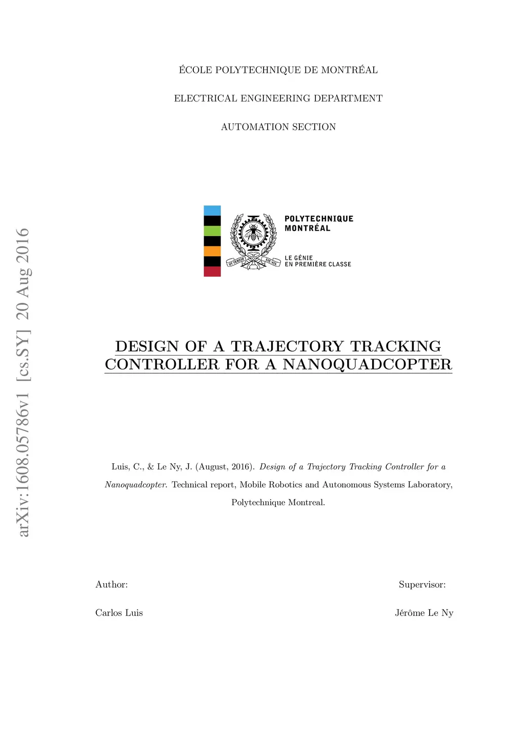 Design of a Trajectory Tracking Controller for a Nanoquadcopter