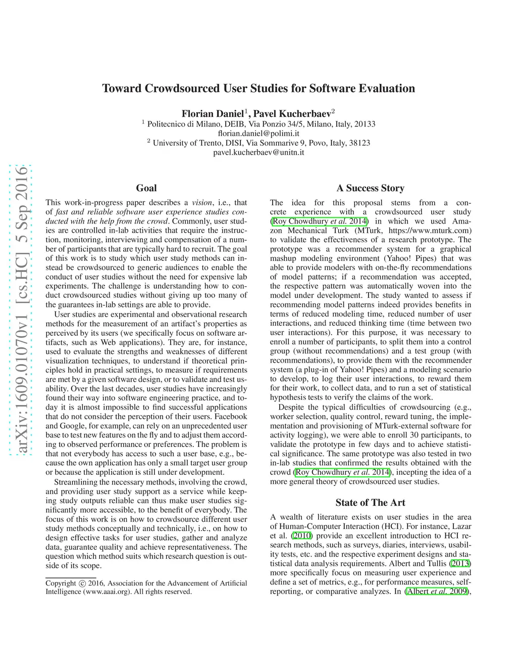 This work-in-progress paper describes a vision, i.e., that of fast and reliable software user experience studies conducted with the help from the crowd. Commonly, user studies are controlled in-lab activities that require the instruction, monitoring, interviewing and compensation of a number of participants that are typically hard to recruit. The goal of this work is to study which user study methods can instead be crowdsourced to generic audiences to enable the conduct of user studies without the need for expensive lab experiments. The challenge is understanding how to conduct crowdsourced studies without giving up too many of the guarantees in-lab settings are able to provide.