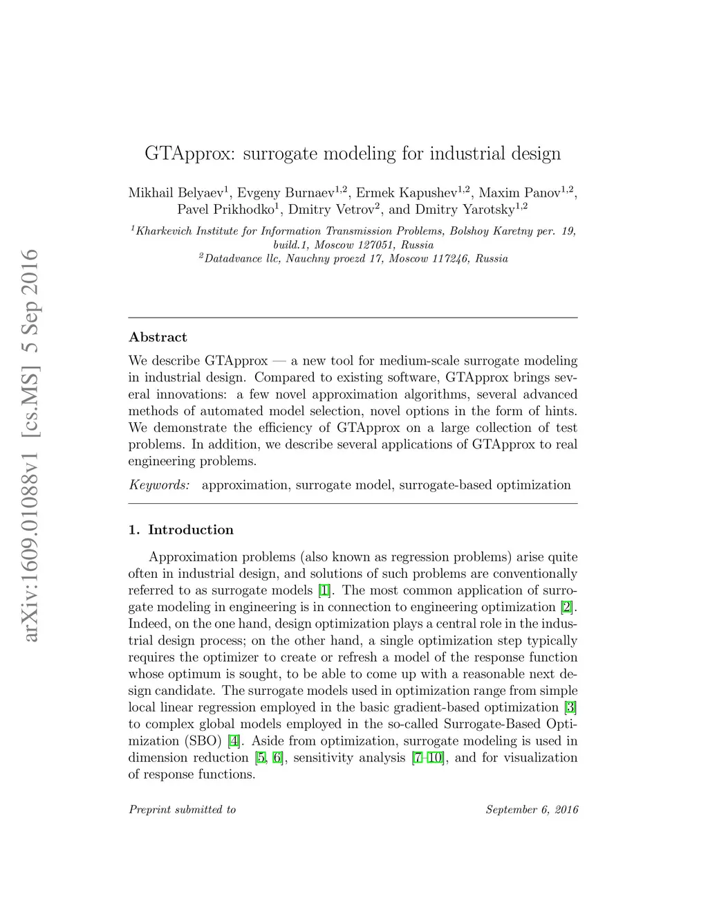 GTApprox: surrogate modeling for industrial design