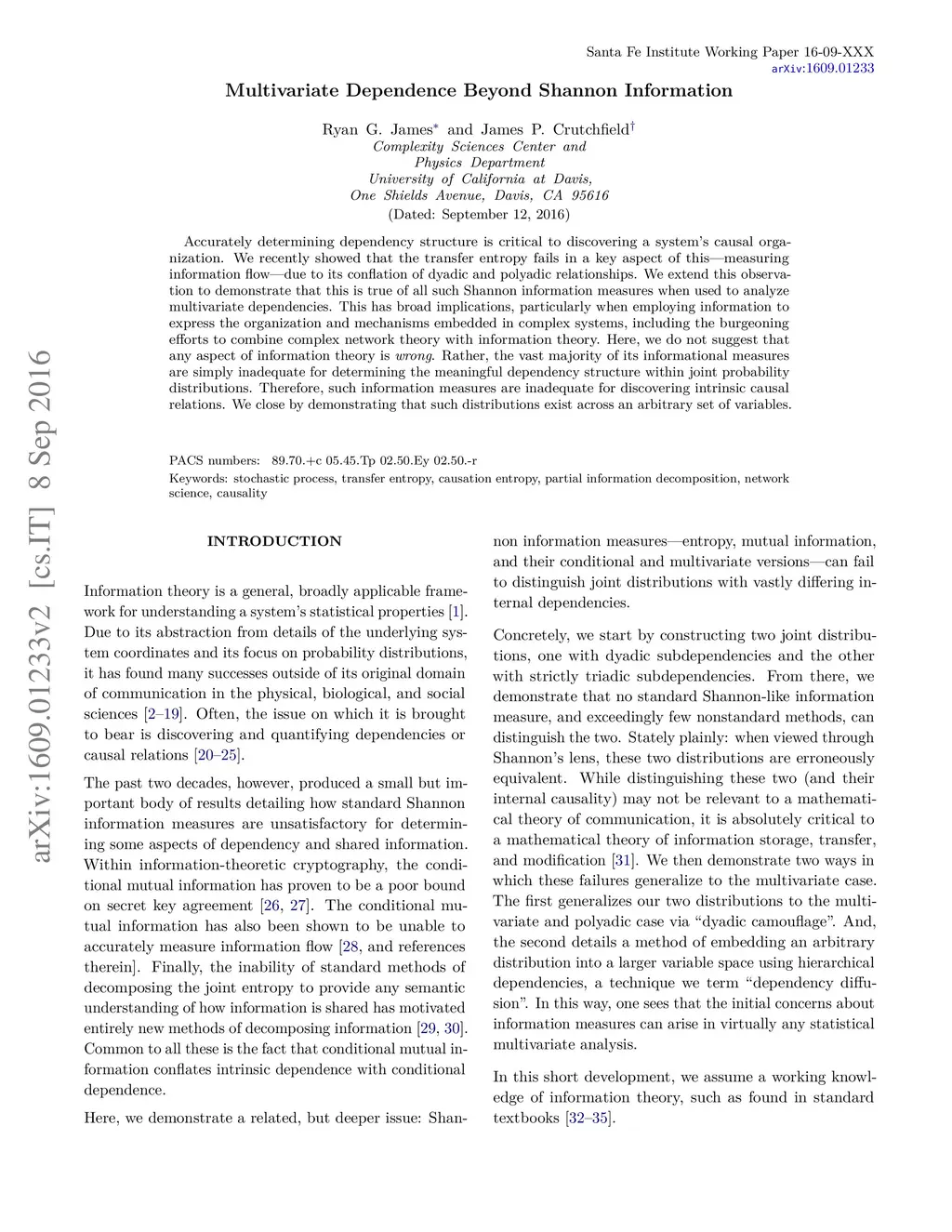 Accurately determining dependency structure is critical to discovering a system's causal organization. We recently showed that the transfer entropy fails in a key aspect of this---measuring information flow---due to its conflation of dyadic and polyadic relationships. We extend this observation to demonstrate that this is true of all such Shannon information measures when used to analyze multivariate dependencies. This has broad implications, particularly when employing information to express the organization and mechanisms embedded in complex systems, including the burgeoning efforts to combine complex network theory with information theory. Here, we do not suggest that any aspect of information theory is wrong. Rather, the vast majority of its informational measures are simply inadequate for determining the meaningful dependency structure within joint probability distributions. Therefore, such information measures are inadequate for discovering intrinsic causal relations. We close by demonstrating that such distributions exist across an arbitrary set of variables.