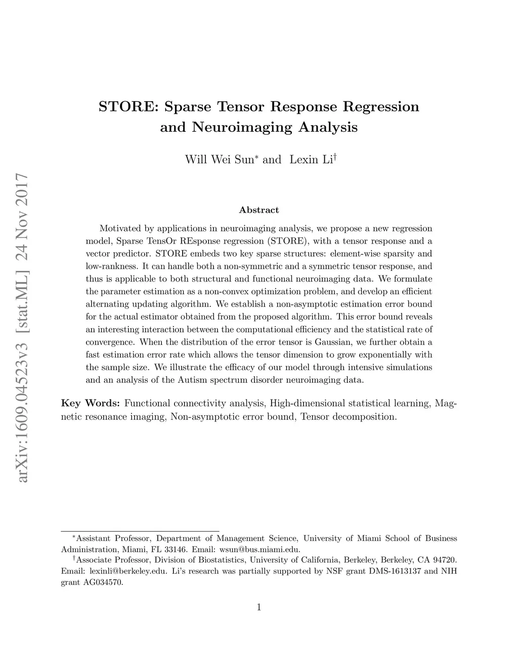 STORE: Sparse Tensor Response Regression and Neuroimaging Analysis