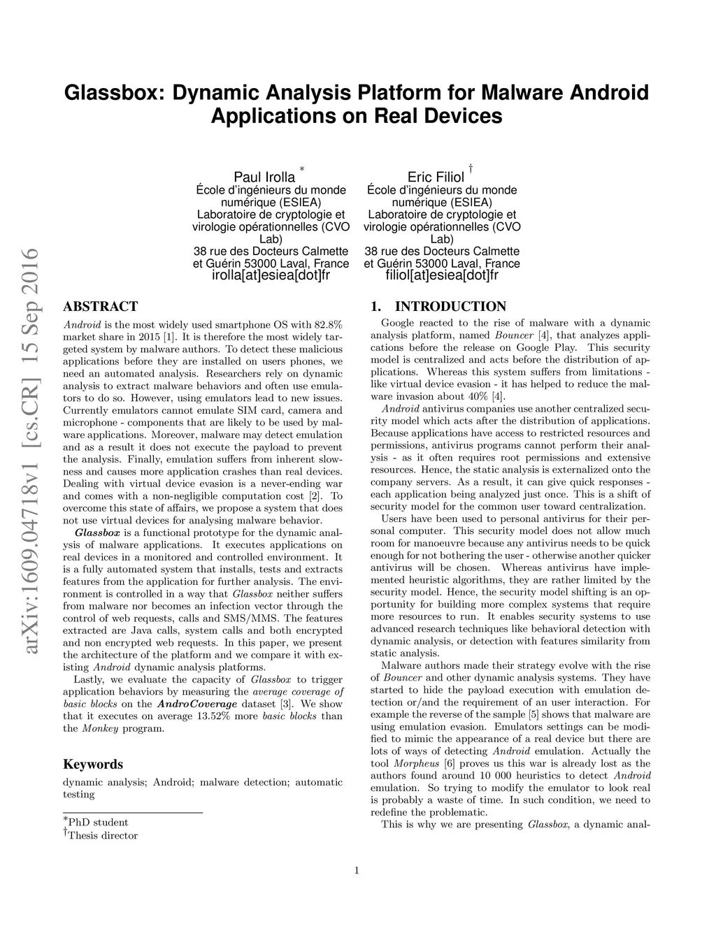 Glassbox: Dynamic Analysis Platform for Malware Android Applications on
