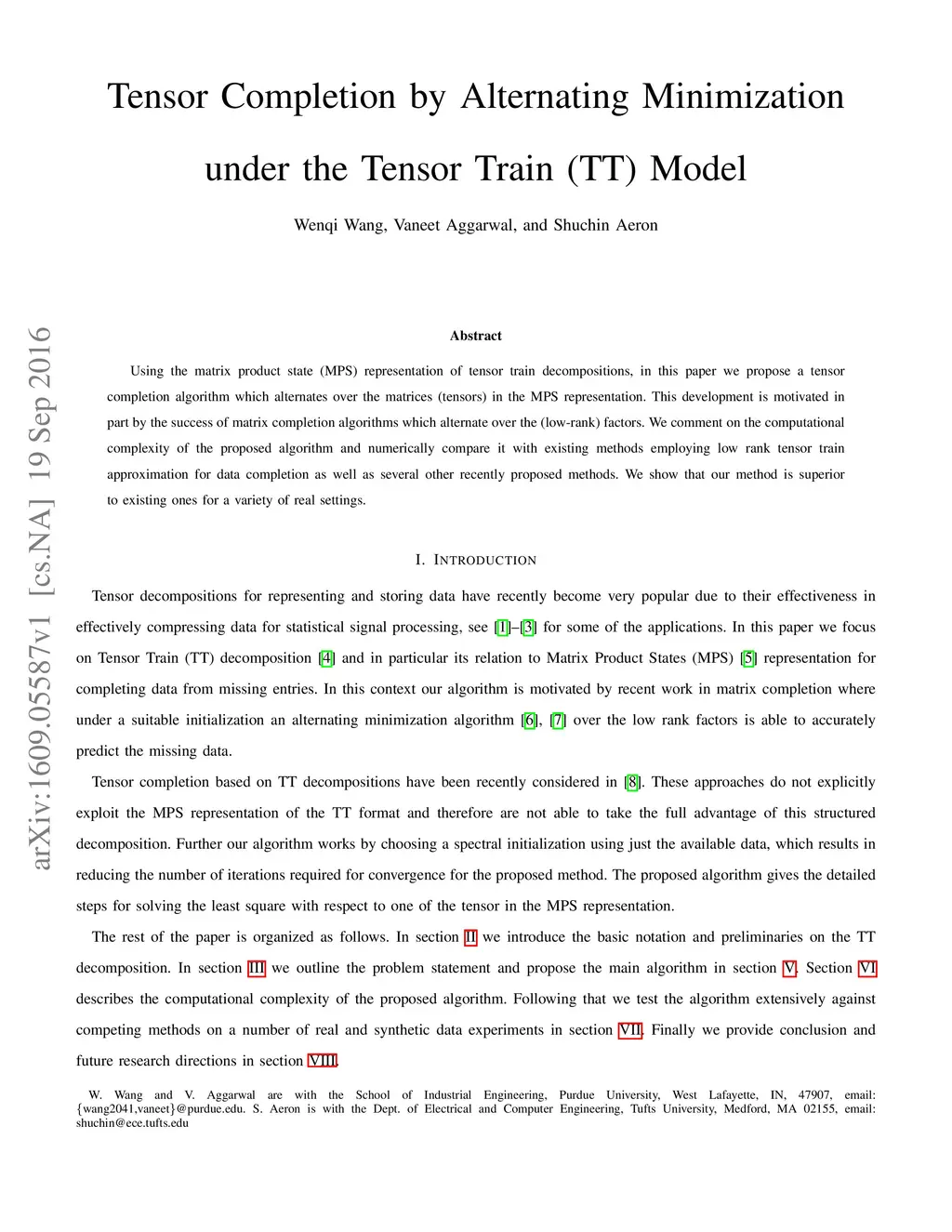 Using the matrix product state (MPS) representation of tensor train decompositions, in this paper we propose a tensor completion algorithm which alternates over the matrices (tensors) in the MPS representation. This development is motivated in part by the success of matrix completion algorithms which alternate over the (low-rank) factors. We comment on the computational complexity of the proposed algorithm and numerically compare it with existing methods employing low rank tensor train approximation for data completion as well as several other recently proposed methods. We show that our method is superior to existing ones for a variety of real settings.