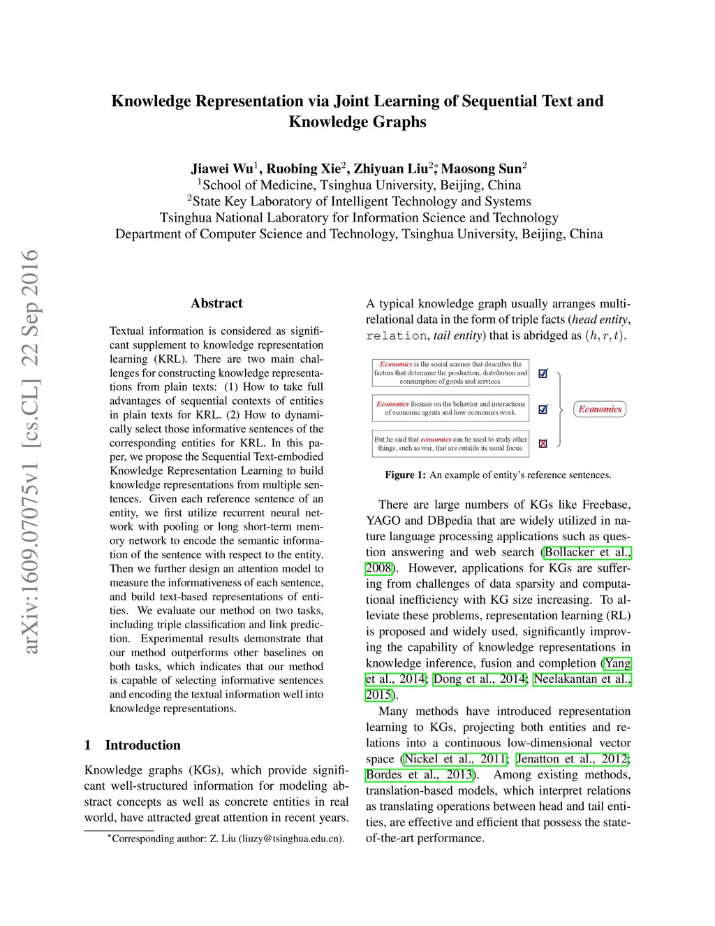 Textual information is considered as significant supplement to knowledge representation learning (KRL). There are two main challenges for constructing knowledge representations from plain texts: (1) How to take full advantages of sequential contexts of entities in plain texts for KRL. (2) How to dynamically select those informative sentences of the corresponding entities for KRL. In this paper, we propose the Sequential Text-embodied Knowledge Representation Learning to build knowledge representations from multiple sentences. Given each reference sentence of an entity, we first utilize recurrent neural network with pooling or long short-term memory network to encode the semantic information of the sentence with respect to the entity. Then we further design an attention model to measure the informativeness of each sentence, and build text-based representations of entities. We evaluate our method on two tasks, including triple classification and link prediction. Experimental results demonstrate that our method outperforms other baselines on both tasks, which indicates that our method is capable of selecting informative sentences and encoding the textual information well into knowledge representations.