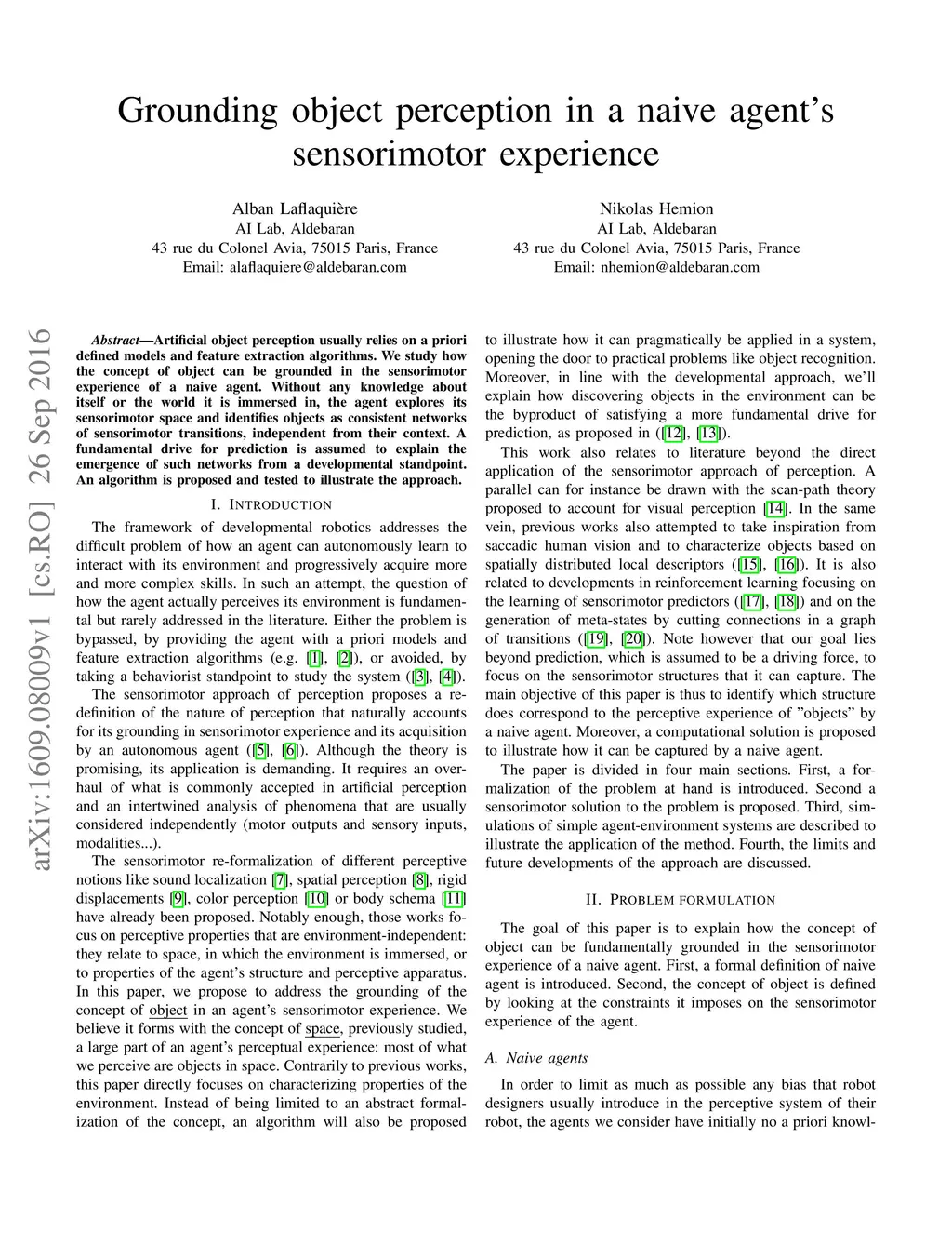 Artificial object perception usually relies on a priori defined models and feature extraction algorithms. We study how the concept of object can be grounded in the sensorimotor experience of a naive agent. Without any knowledge about itself or the world it is immersed in, the agent explores its sensorimotor space and identifies objects as consistent networks of sensorimotor transitions, independent from their context. A fundamental drive for prediction is assumed to explain the emergence of such networks from a developmental standpoint. An algorithm is proposed and tested to illustrate the approach.