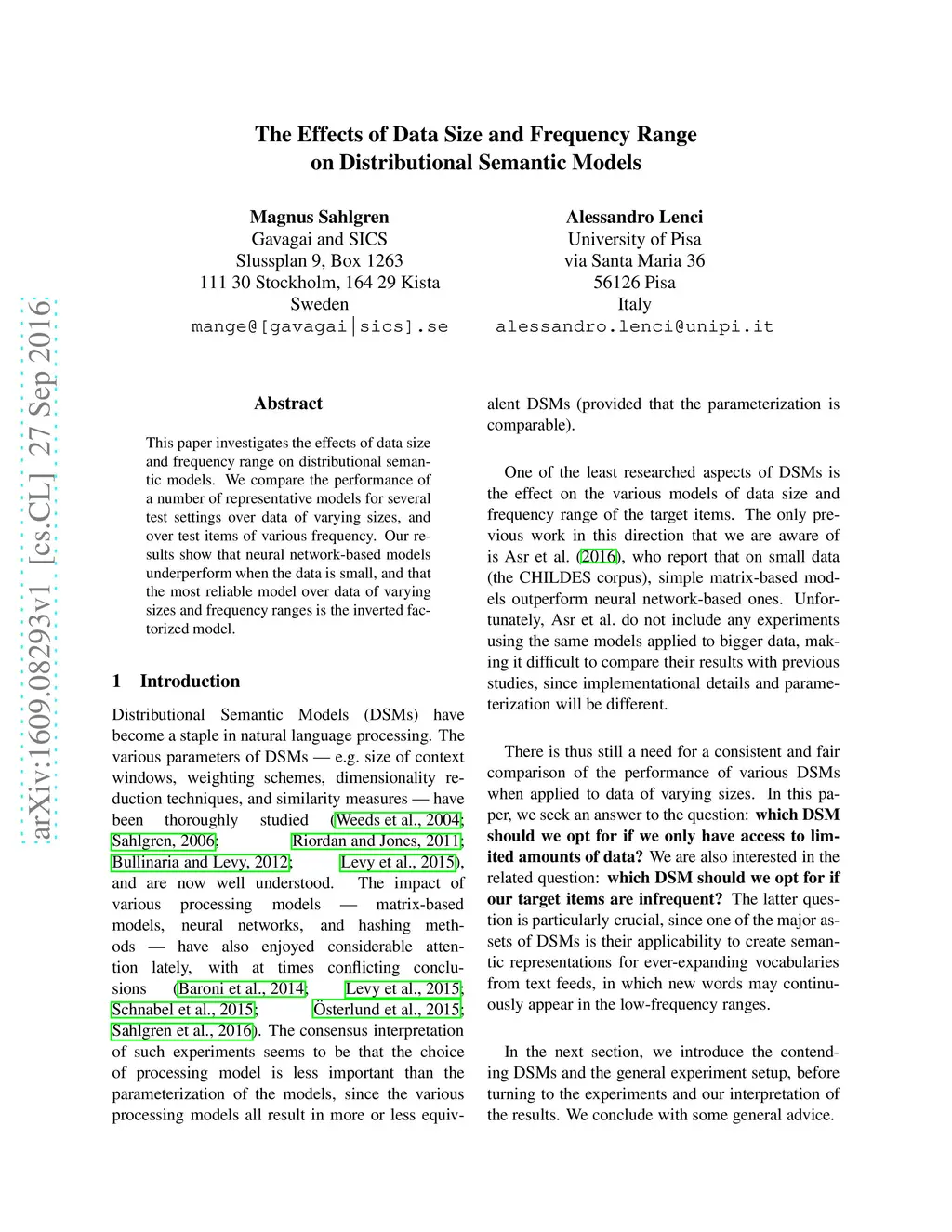 The Effects of Data Size and Frequency Range on Distributional Semantic