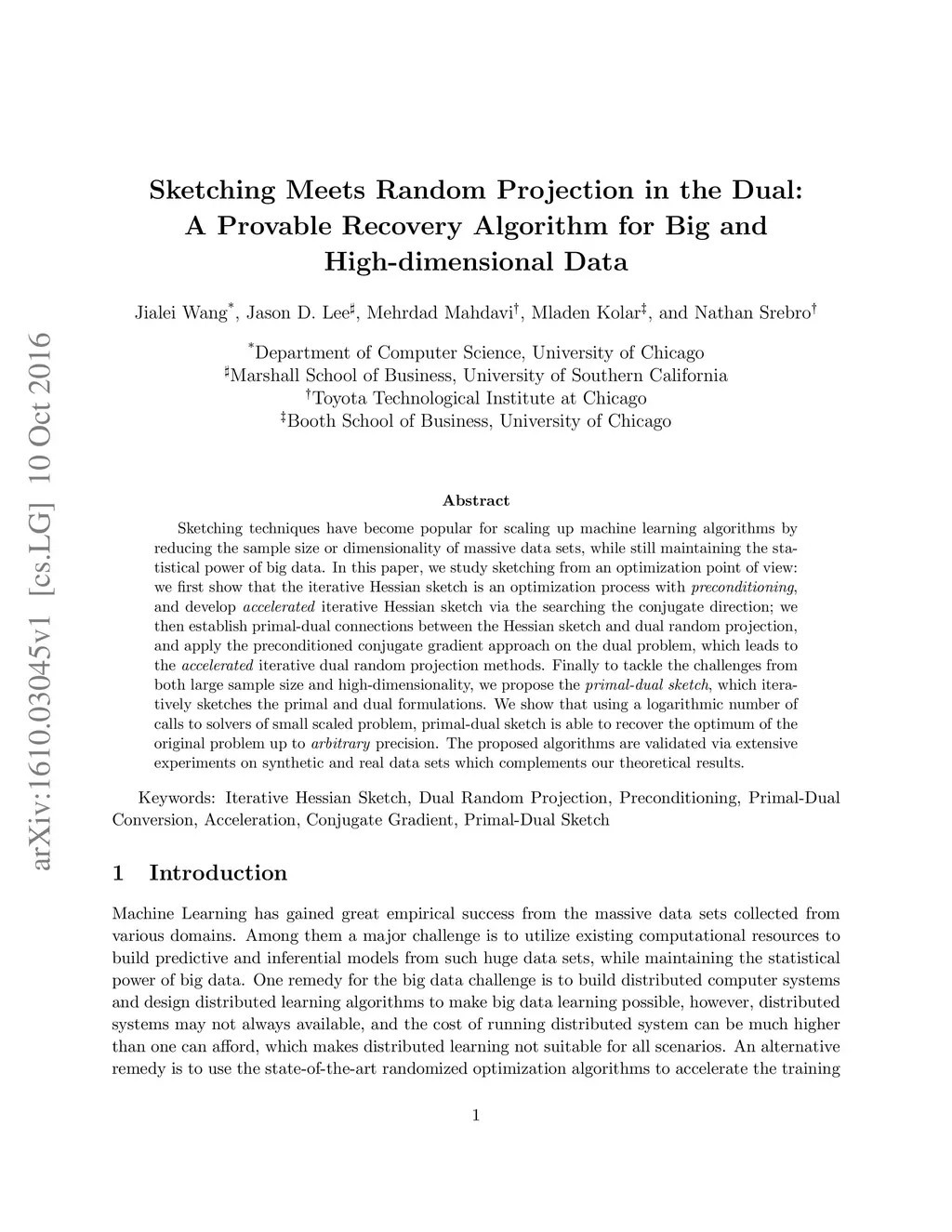 Sketching Meets Random Projection in the Dual: A Provable Recovery