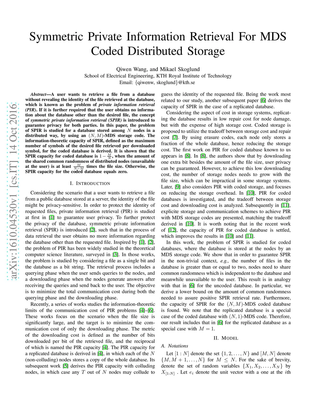 Symmetric Private Information Retrieval For MDS Coded Distributed