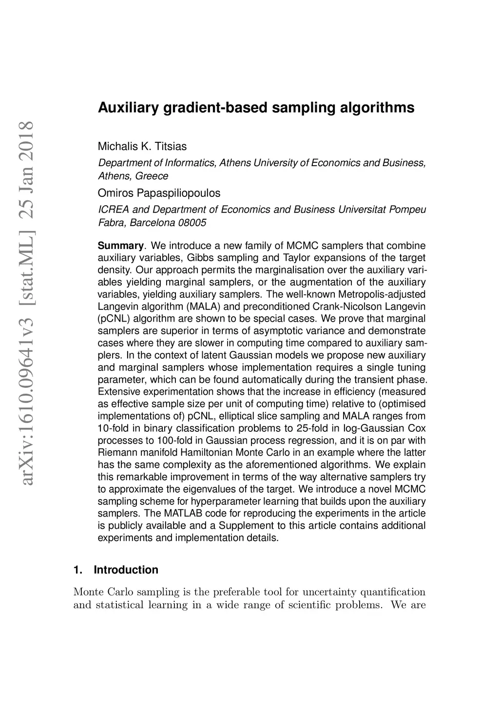 We introduce a new family of MCMC samplers that combine auxiliary variables, Gibbs sampling and Taylor expansions of the target density. Our approach permits the marginalisation over the auxiliary variables yielding marginal samplers, or the augmentation of the auxiliary variables, yielding auxiliary samplers. The well-known Metropolis-adjusted Langevin algorithm (MALA) and preconditioned Crank-Nicolson Langevin (pCNL) algorithm are shown to be special cases. We prove that marginal samplers are superior in terms of asymptotic variance and demonstrate cases where they are slower in computing time compared to auxiliary samplers. In the context of latent Gaussian models we propose new auxiliary and marginal samplers whose implementation requires a single tuning parameter, which can be found automatically during the transient phase. Extensive experimentation shows that the increase in efficiency (measured as effective sample size per unit of computing time) relative to (optimised implementations of) pCNL, elliptical slice sampling and MALA ranges from 10-fold in binary classification problems to 25-fold in log-Gaussian Cox processes to 100-fold in Gaussian process regression, and it is on par with Riemann manifold Hamiltonian Monte Carlo in an example where the latter has the same complexity as the aforementioned algorithms. We explain this remarkable improvement in terms of the way alternative samplers try to approximate the eigenvalues of the target. We introduce a novel MCMC sampling scheme for hyperparameter learning that builds upon the auxiliary samplers. The MATLAB code for reproducing the experiments in the article is publicly available and a Supplement to this article contains additional experiments and implementation details.