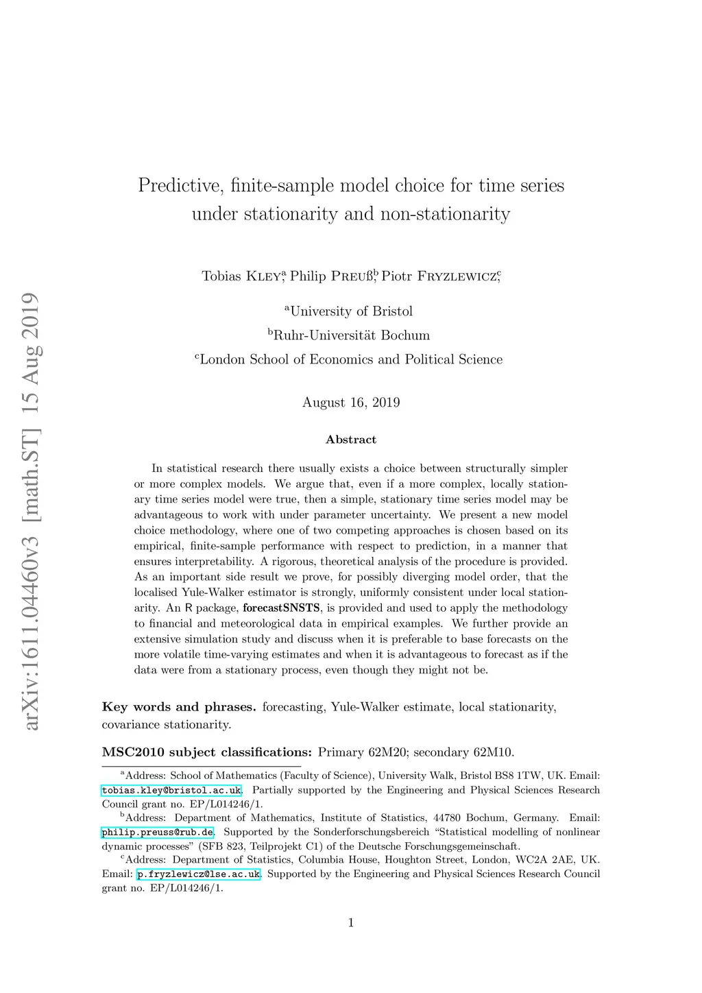 In statistical research there usually exists a choice between structurally simpler or more complex models. We argue that, even if a more complex, locally stationary time series model were true, then a simple, stationary time series model may be advantageous to work with under parameter uncertainty. We present a new model choice methodology, where one of two competing approaches is chosen based on its empirical, finite-sample performance with respect to prediction, in a manner that ensures interpretability. A rigorous, theoretical analysis of the procedure is provided. As an important side result we prove, for possibly diverging model order, that the localised Yule-Walker estimator is strongly, uniformly consistent under local stationarity. An R package, forecastSNSTS, is provided and used to apply the methodology to financial and meteorological data in empirical examples. We further provide an extensive simulation study and discuss when it is preferable to base forecasts on the more volatile time-varying estimates and when it is advantageous to forecast as if the data were from a stationary process, even though they might not be.