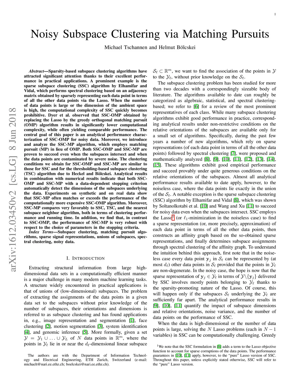 Noisy subspace clustering via matching pursuits