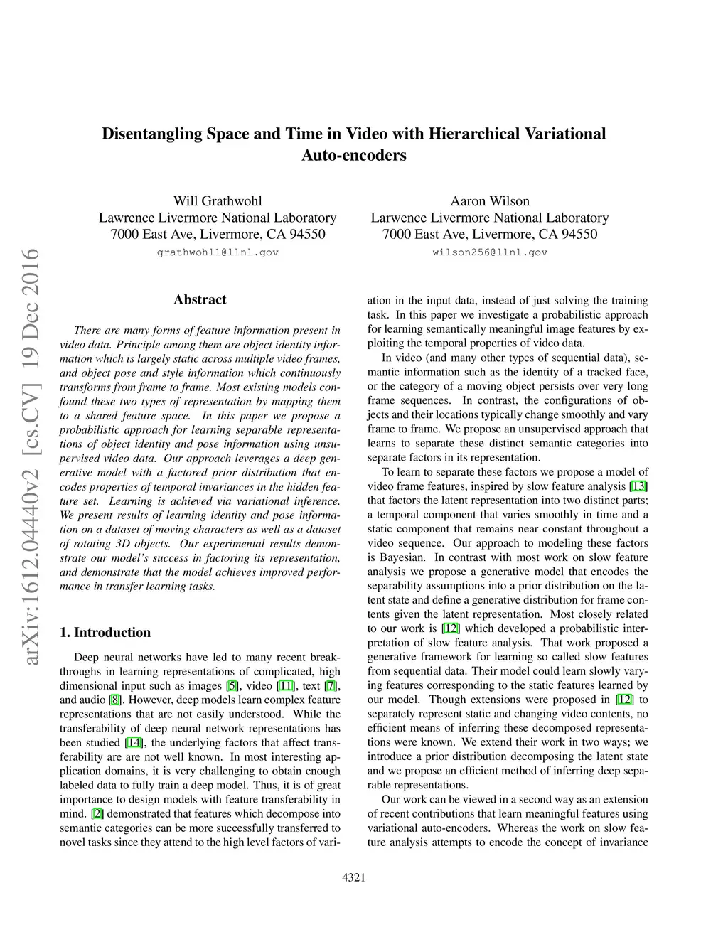 Disentangling Space and Time in Video with Hierarchical Variational