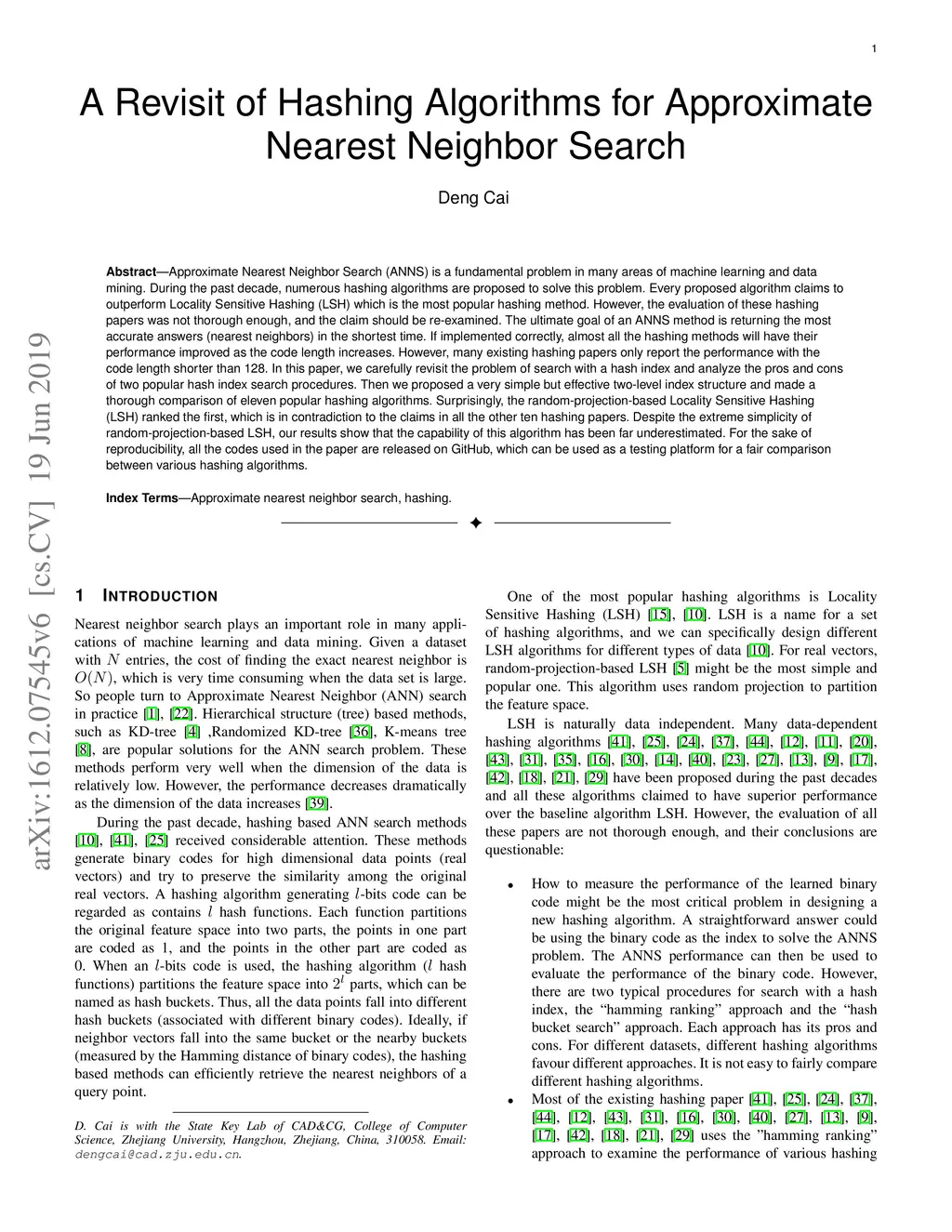 A Revisit of Hashing Algorithms for Approximate Nearest Neighbor Search