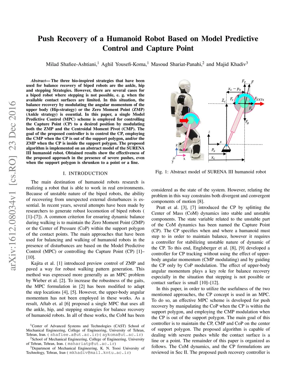 Push Recovery of a Humanoid Robot Based on Model Predictive Control and