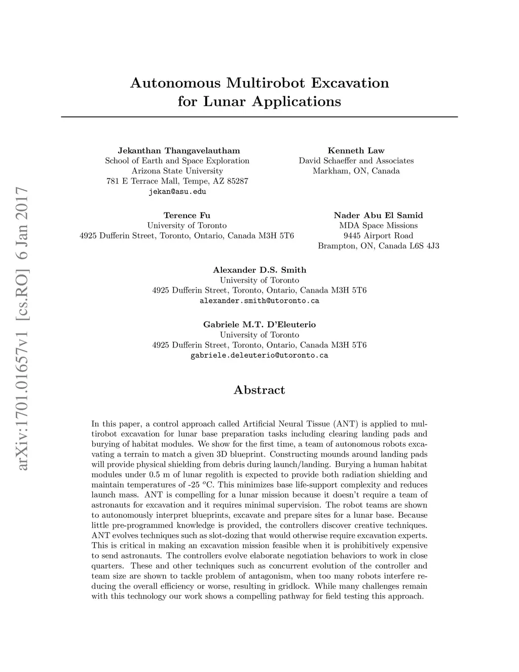 In this paper, a control approach called Artificial Neural Tissue (ANT) is applied to multirobot excavation for lunar base preparation tasks including clearing landing pads and burying of habitat modules. We show for the first time, a team of autonomous robots excavating a terrain to match a given 3D blueprint. Constructing mounds around landing pads will provide physical shielding from debris during launch/landing. Burying a human habitat modules under 0.5 m of lunar regolith is expected to provide both radiation shielding and maintain temperatures of -25 C. This minimizes base life-support complexity and reduces launch mass. ANT is compelling for a lunar mission because it doesn't require a team of astronauts for excavation and it requires minimal supervision. The robot teams are shown to autonomously interpret blueprints, excavate and prepare sites for a lunar base. Because little pre-programmed knowledge is provided, the controllers discover creative techniques. ANT evolves techniques such as slot-dozing that would otherwise require excavation experts. This is critical in making an excavation mission feasible when it is prohibitively expensive to send astronauts. The controllers evolve elaborate negotiation behaviors to work in close quarters. These and other techniques such as concurrent evolution of the controller and team size are shown to tackle problem of antagonism, when too many robots interfere reducing the overall efficiency or worse, resulting in gridlock. While many challenges remain with this technology our work shows a compelling pathway for field testing this approach.