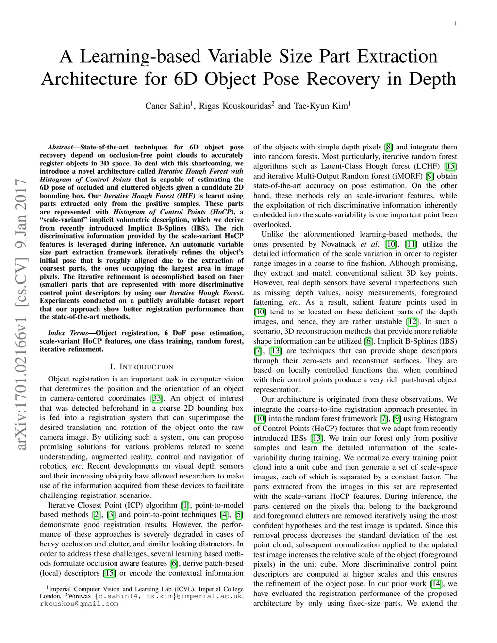 A Learning-based Variable Size Part Extraction Architecture for 6D