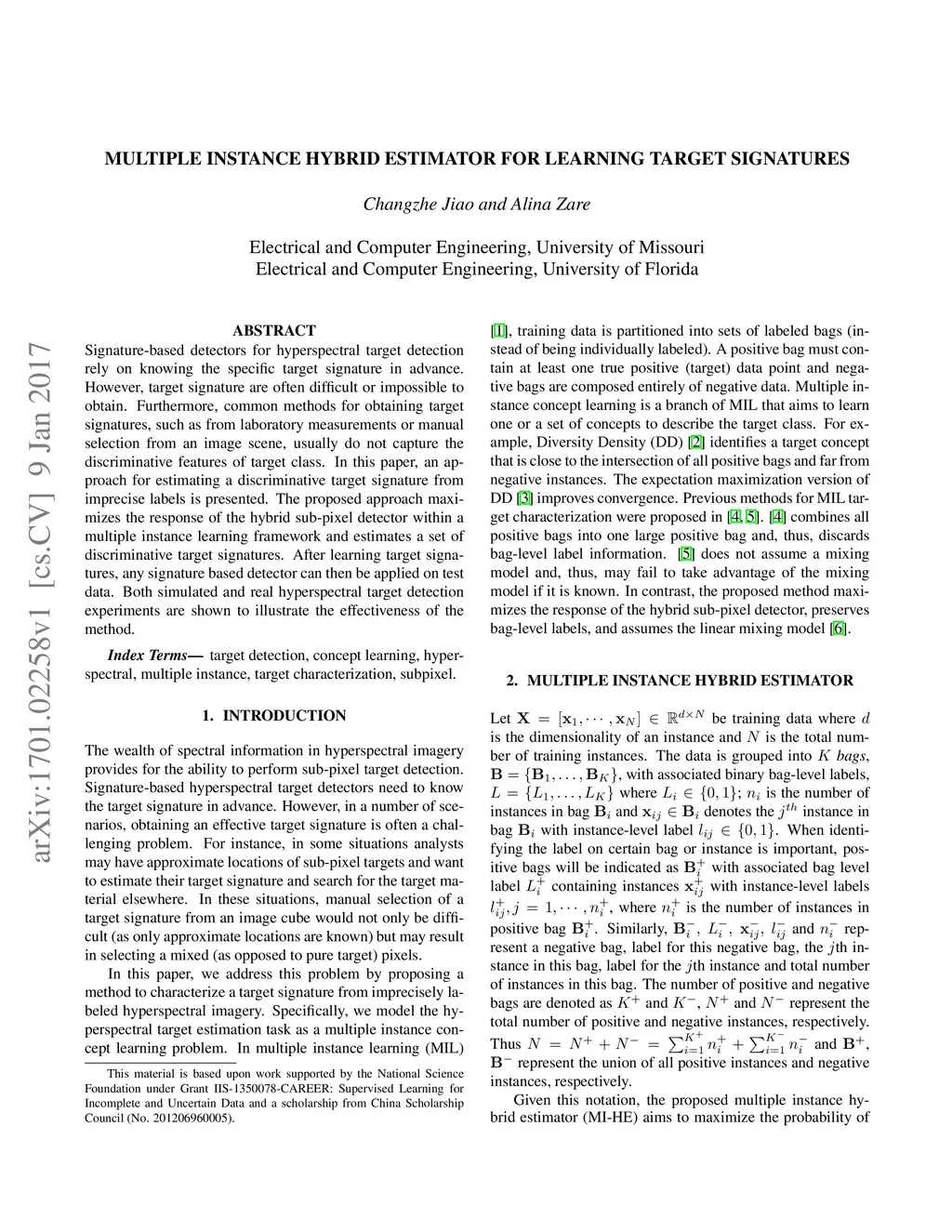 Multiple Instance Hybrid Estimator for Learning Target Signatures