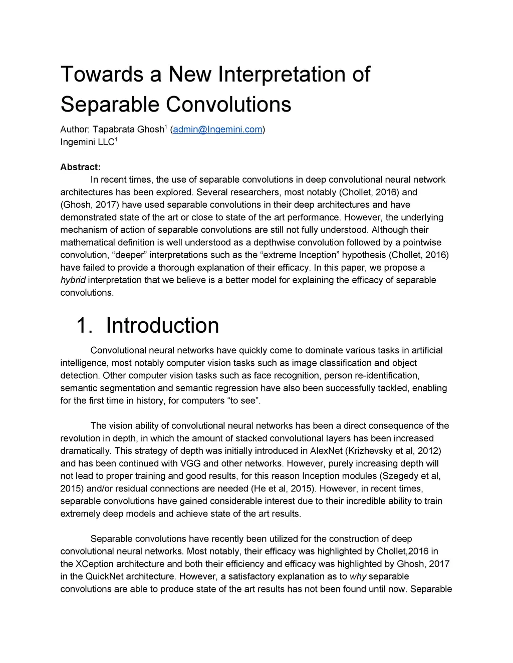 In recent times, the use of separable convolutions in deep convolutional neural network architectures has been explored. Several researchers, most notably (Chollet, 2016) and (Ghosh, 2017) have used separable convolutions in their deep architectures and have demonstrated state of the art or close to state of the art performance. However, the underlying mechanism of action of separable convolutions are still not fully understood. Although their mathematical definition is well understood as a depthwise convolution followed by a pointwise convolution, deeper interpretations such as the extreme Inception hypothesis (Chollet, 2016) have failed to provide a thorough explanation of their efficacy. In this paper, we propose a hybrid interpretation that we believe is a better model for explaining the efficacy of separable convolutions.