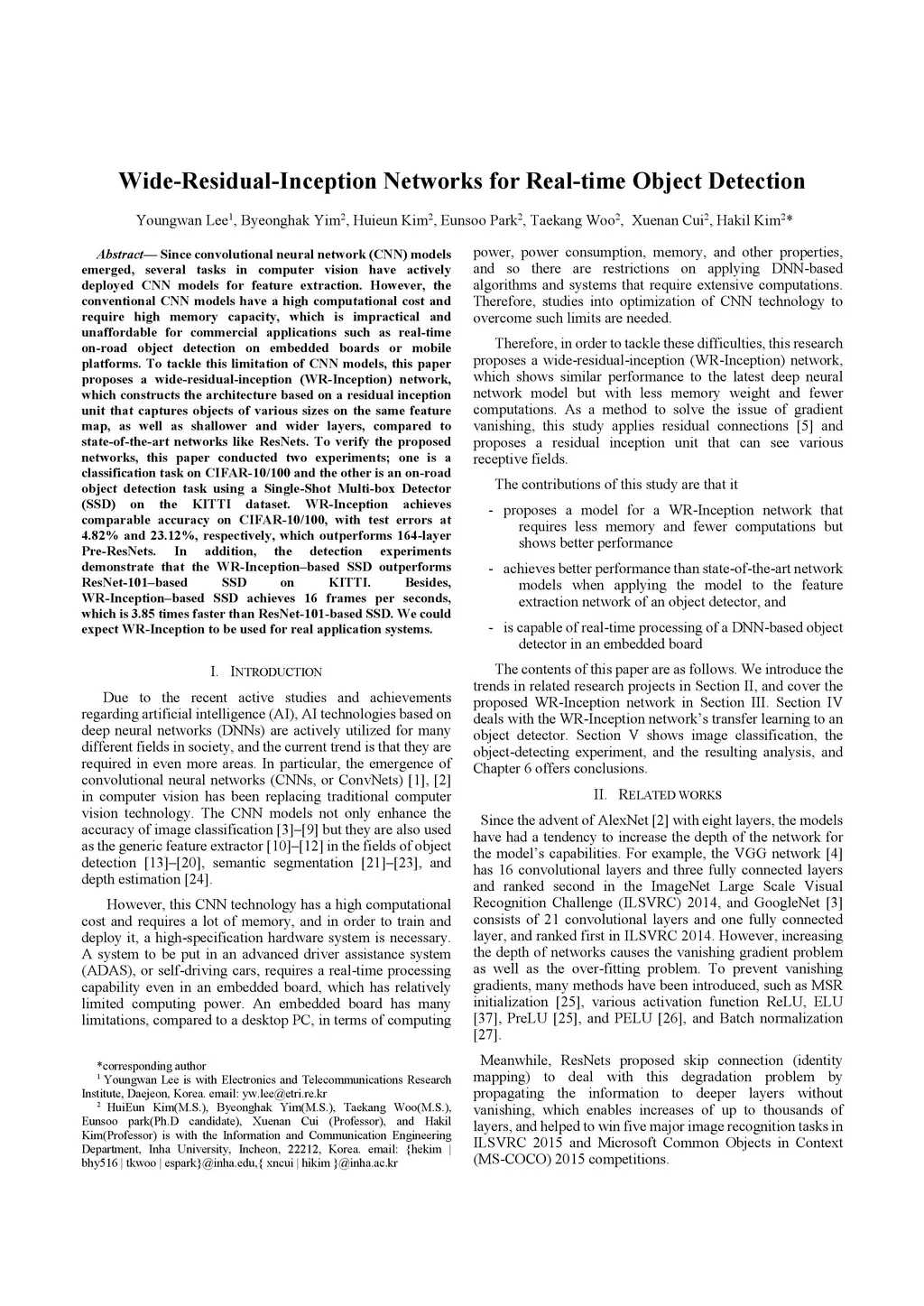 Wide-Residual-Inception Networks for Real-time Object Detection