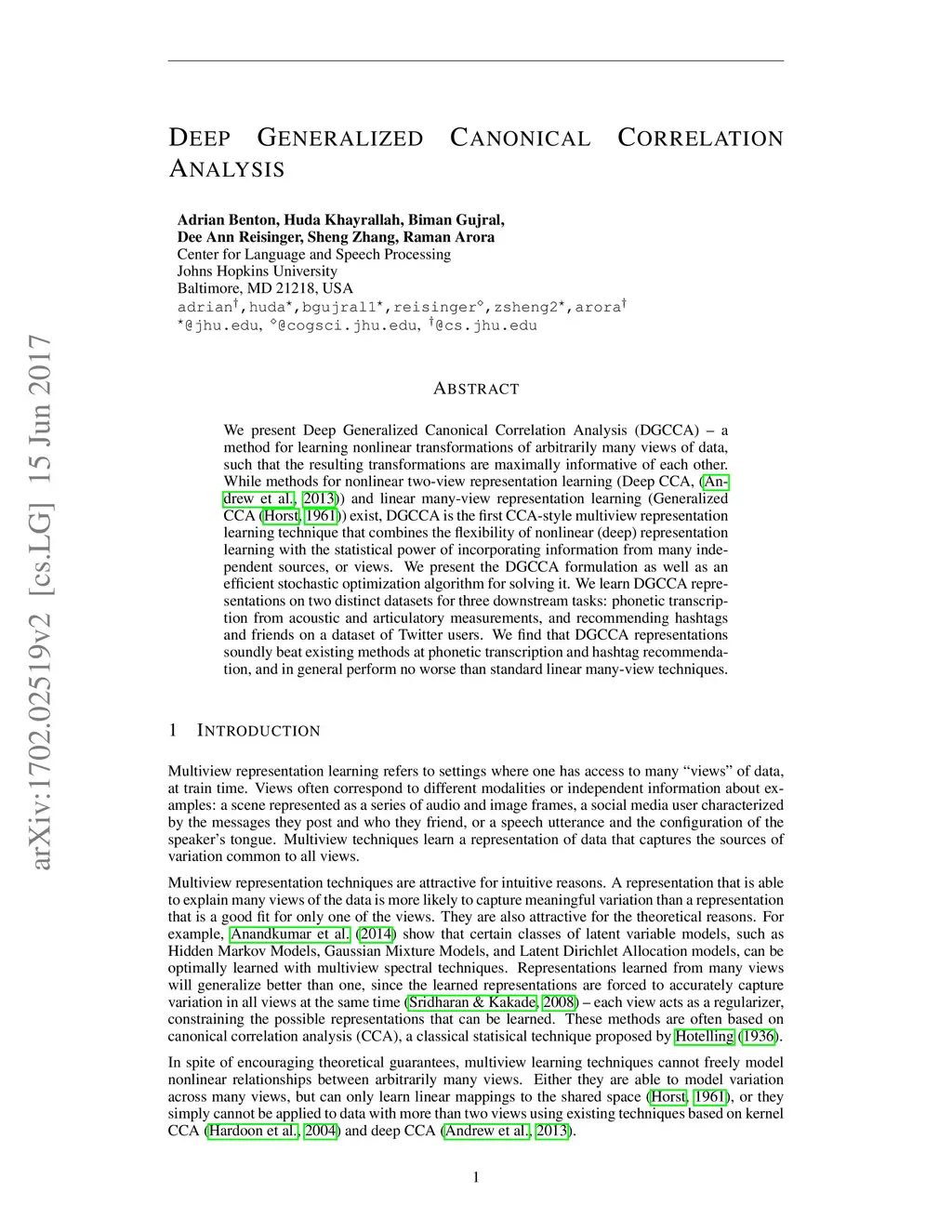 Deep Generalized Canonical Correlation Analysis