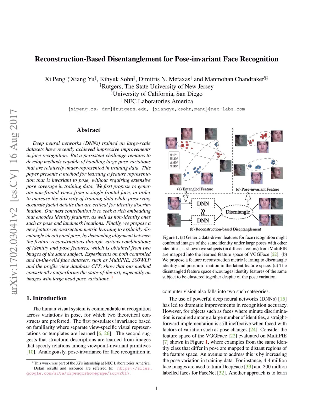 Reconstruction-Based Disentanglement for Pose-invariant Face Recognition