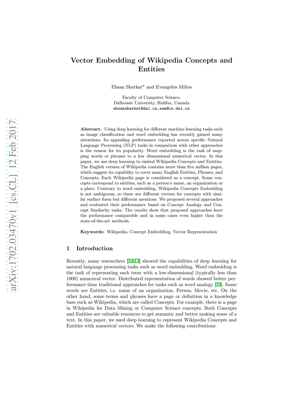 Vector Embedding of Wikipedia Concepts and Entities