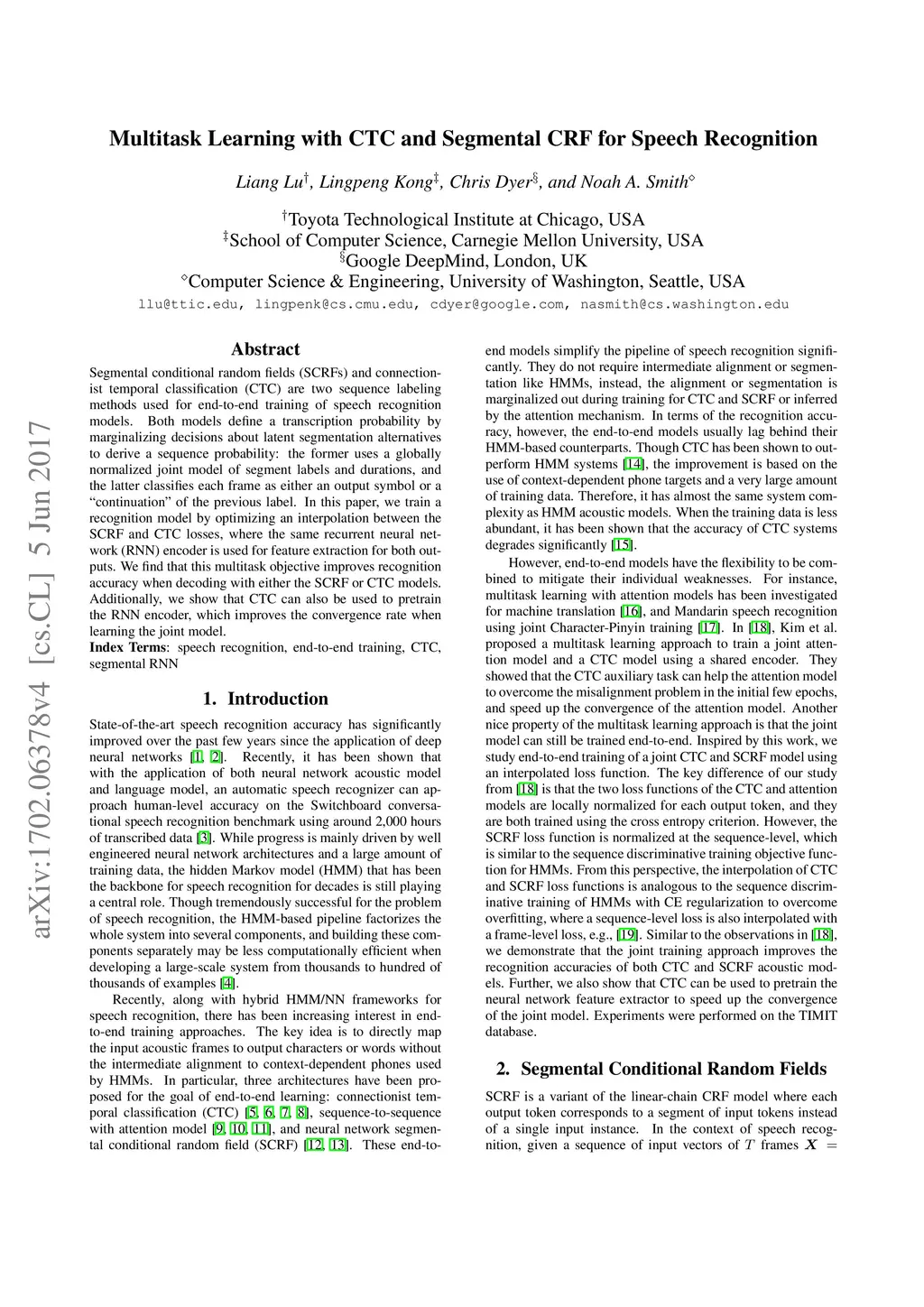 Multitask Learning with CTC and Segmental CRF for Speech Recognition