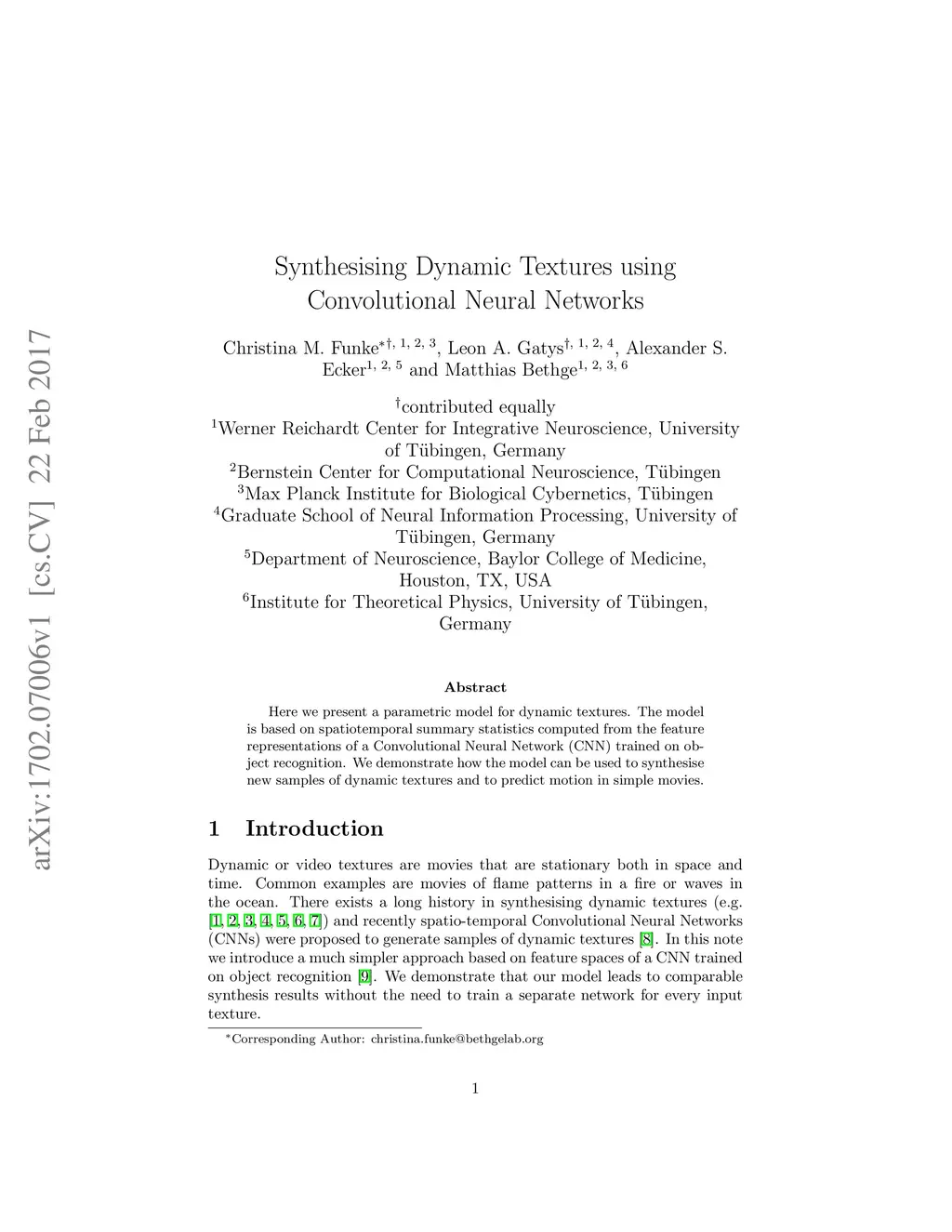 Synthesising Dynamic Textures using Convolutional Neural Networks