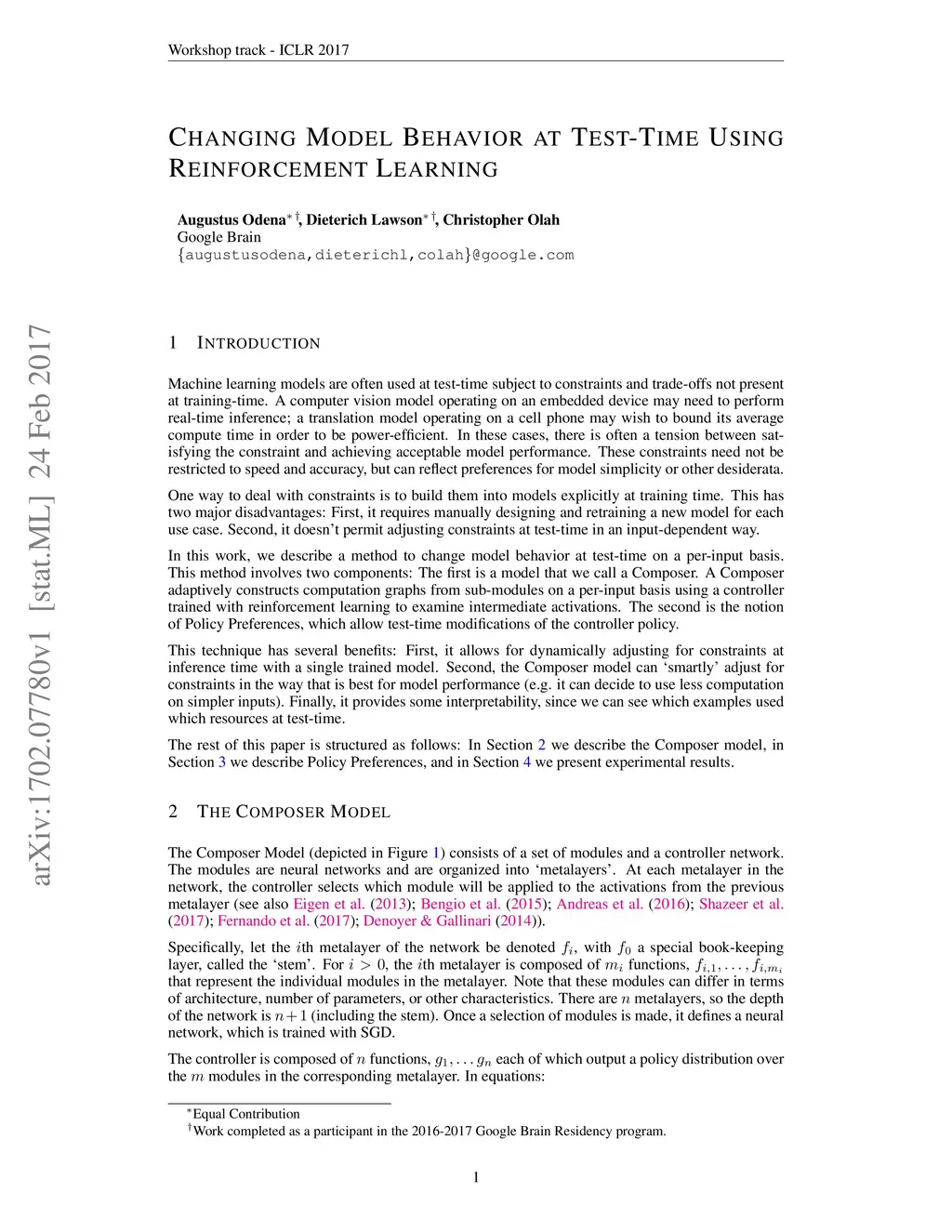 Machine learning models are often used at test-time subject to constraints and trade-offs not present at training-time. For example, a computer vision model operating on an embedded device may need to perform real-time inference, or a translation model operating on a cell phone may wish to bound its average compute time in order to be power-efficient. In this work we describe a mixture-of-experts model and show how to change its test-time resource-usage on a per-input basis using reinforcement learning. We test our method on a small MNIST-based example.