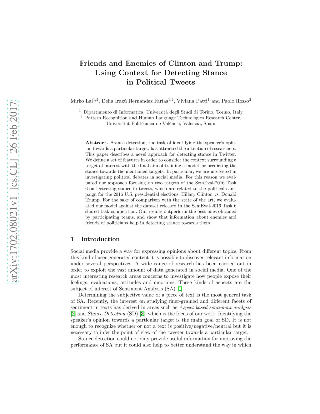 Friends and Enemies of Clinton and Trump: Using Context for Detecting