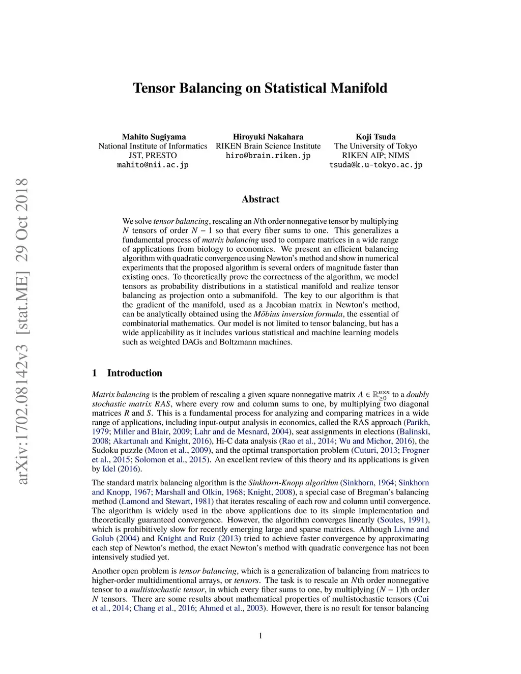 Tensor Balancing on Statistical Manifold