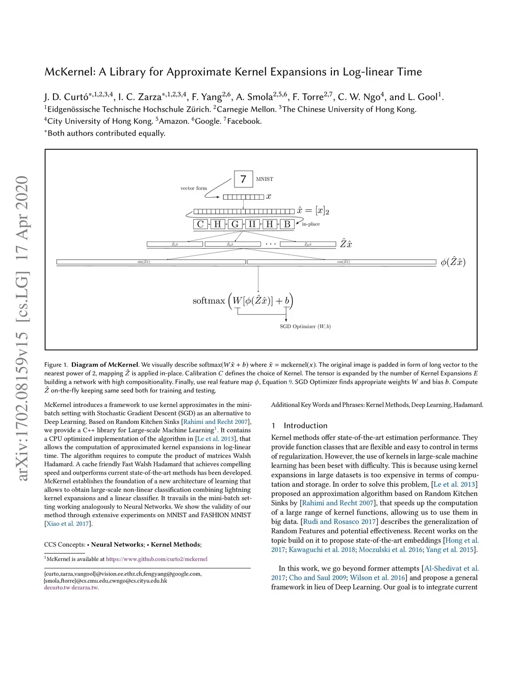 McKernel: A Library for Approximate Kernel Expansions in Log-linear Time