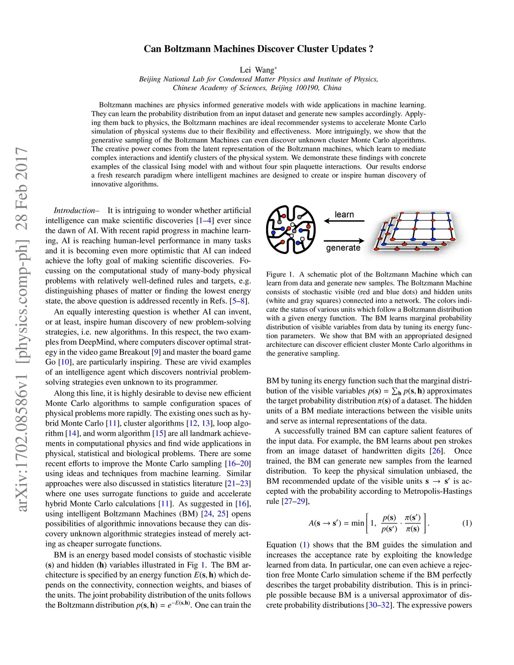 Can Boltzmann Machines Discover Cluster Updates ?
