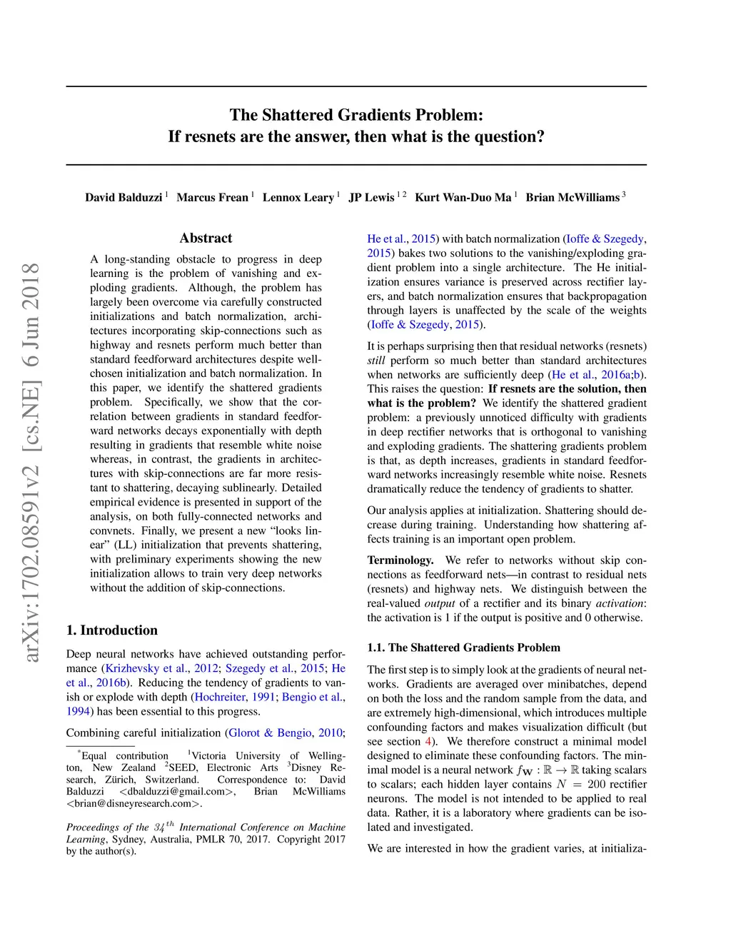 The Shattered Gradients Problem: If resnets are the answer, then what is