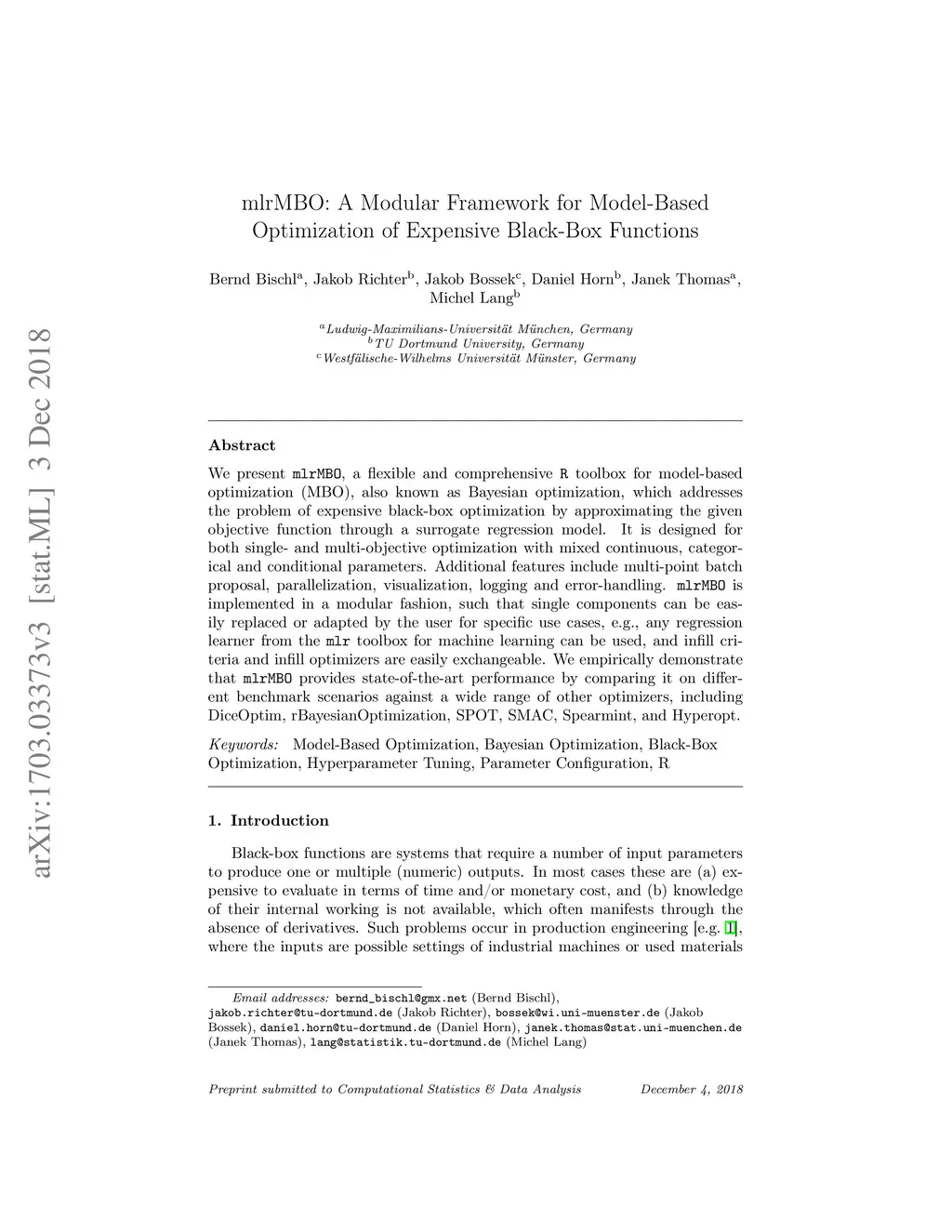 mlrMBO: A Modular Framework for Model-Based Optimization of Expensive Black-Box Functions