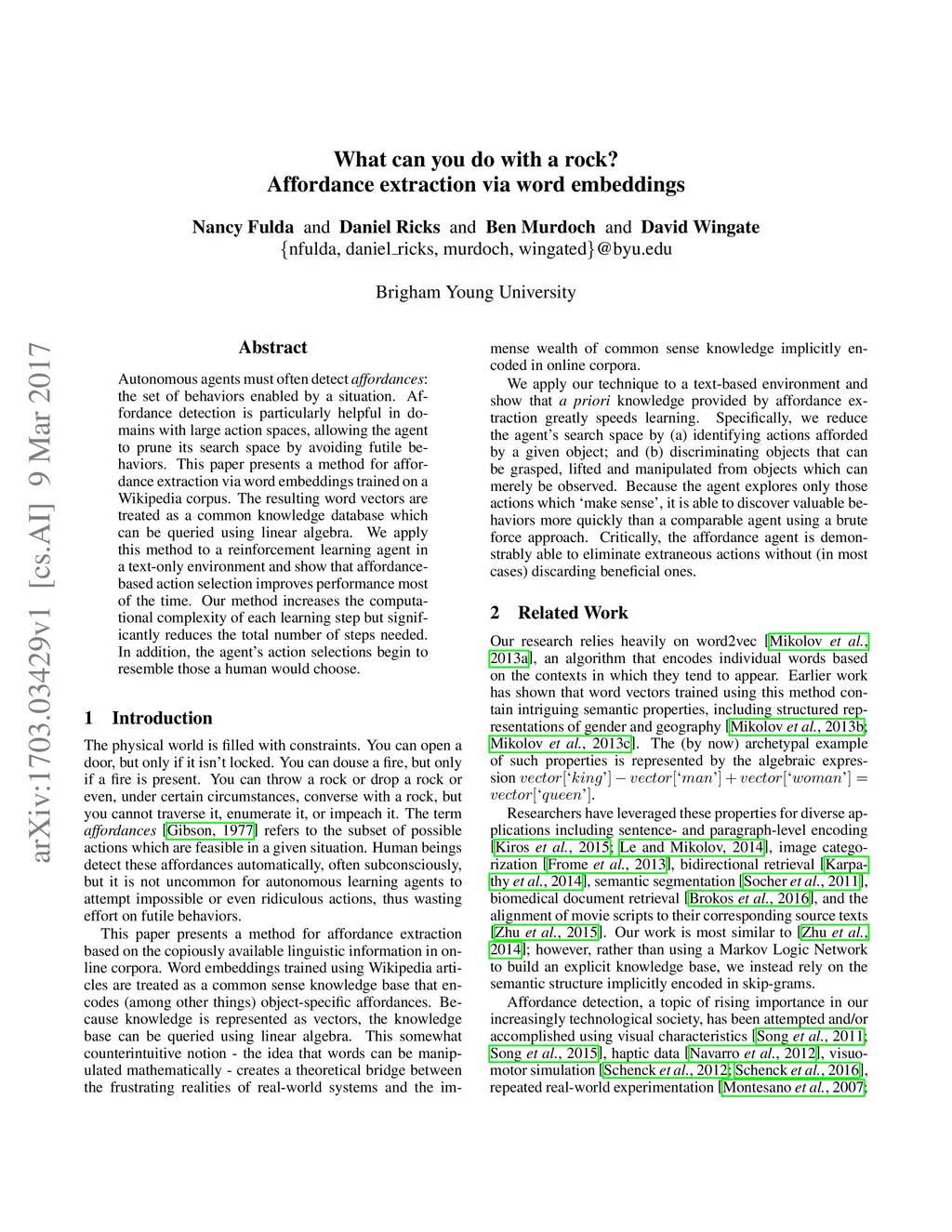 What can you do with a rock? Affordance extraction via word embeddings