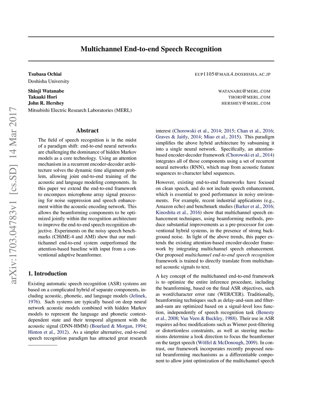 Multichannel End-to-end Speech Recognition