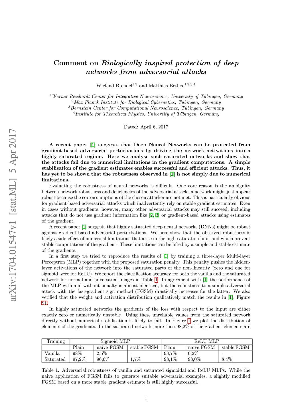 A recent paper suggests that Deep Neural Networks can be protected from gradient-based adversarial perturbations by driving the network activations into a highly saturated regime. Here we analyse such saturated networks and show that the attacks fail due to numerical limitations in the gradient computations. A simple stabilisation of the gradient estimates enables successful and efficient attacks. Thus, it has yet to be shown that the robustness observed in highly saturated networks is not simply due to numerical limitations.