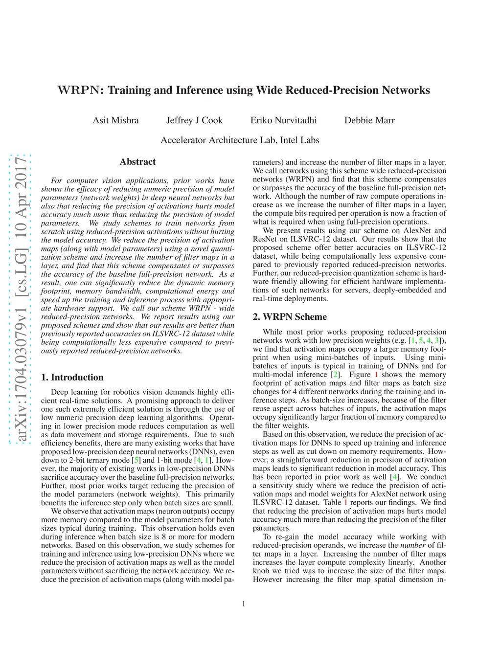 WRPN: Training and Inference using Wide Reduced-Precision Networks
