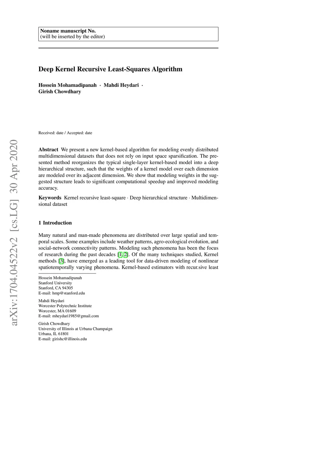 Hierarchic Kernel Recursive Least-Squares