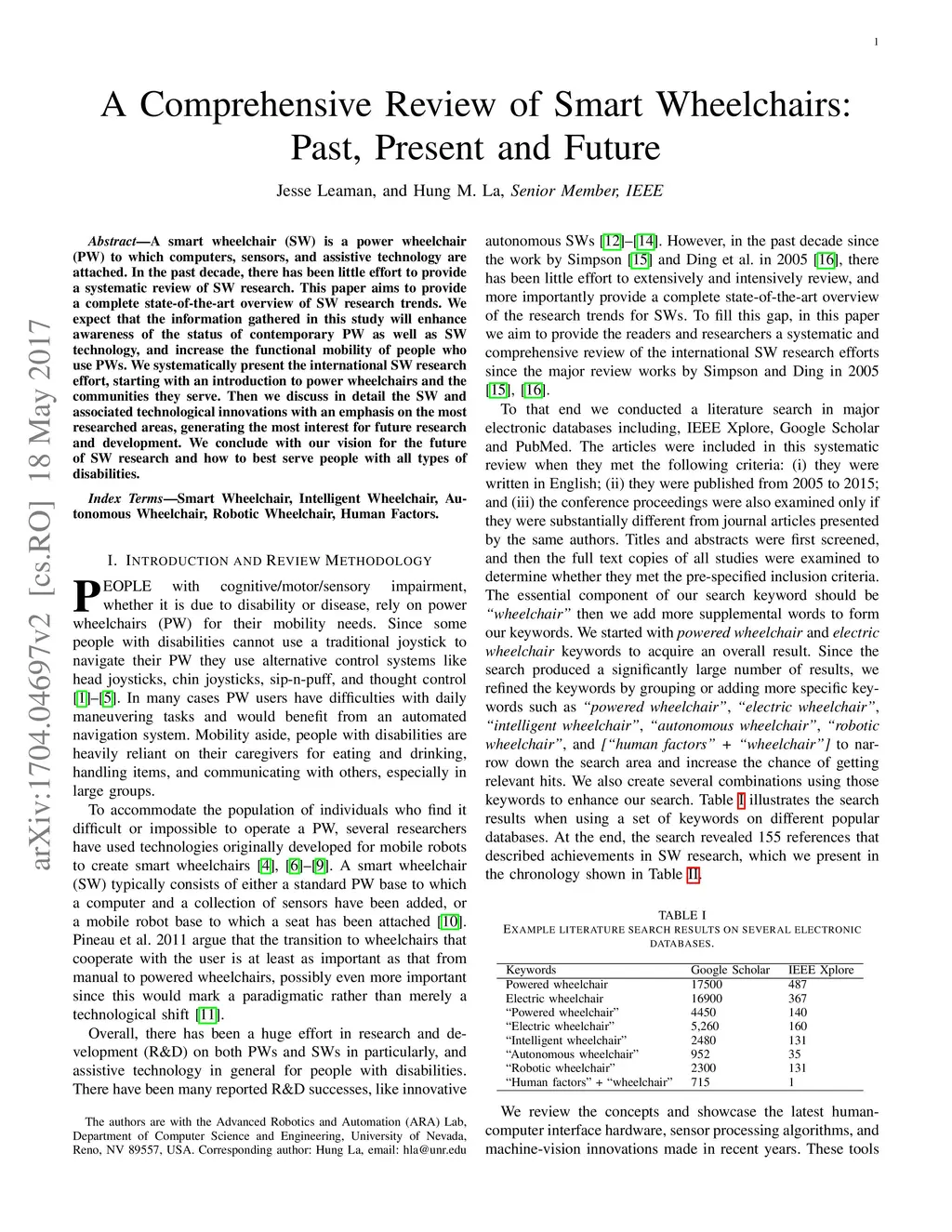 A Comprehensive Review of Smart Wheelchairs: Past, Present and Future