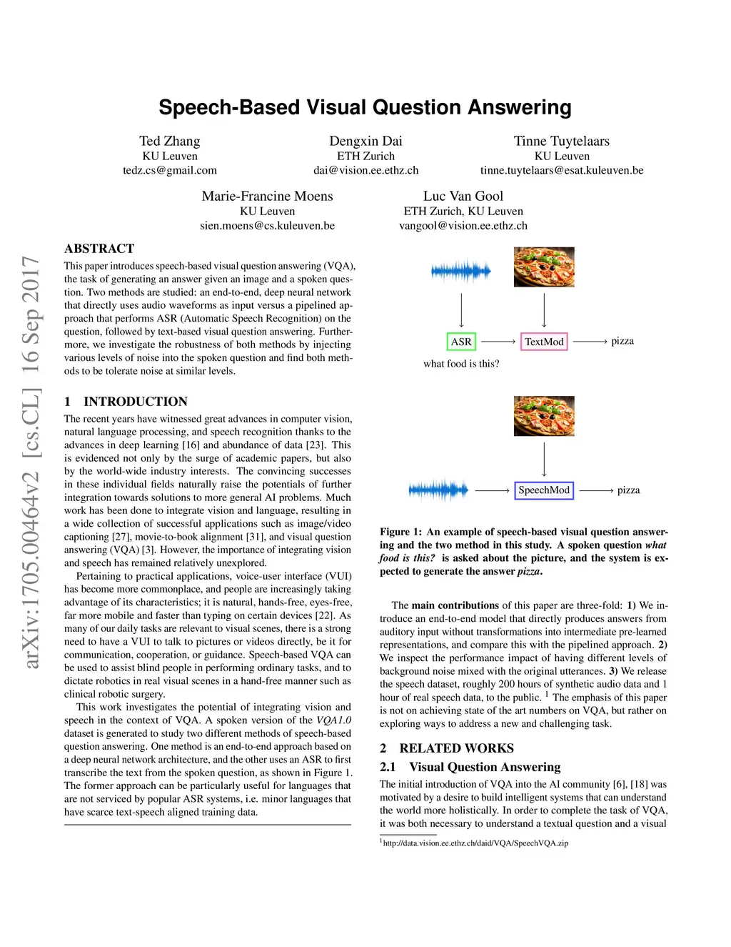 Speech-Based Visual Question Answering