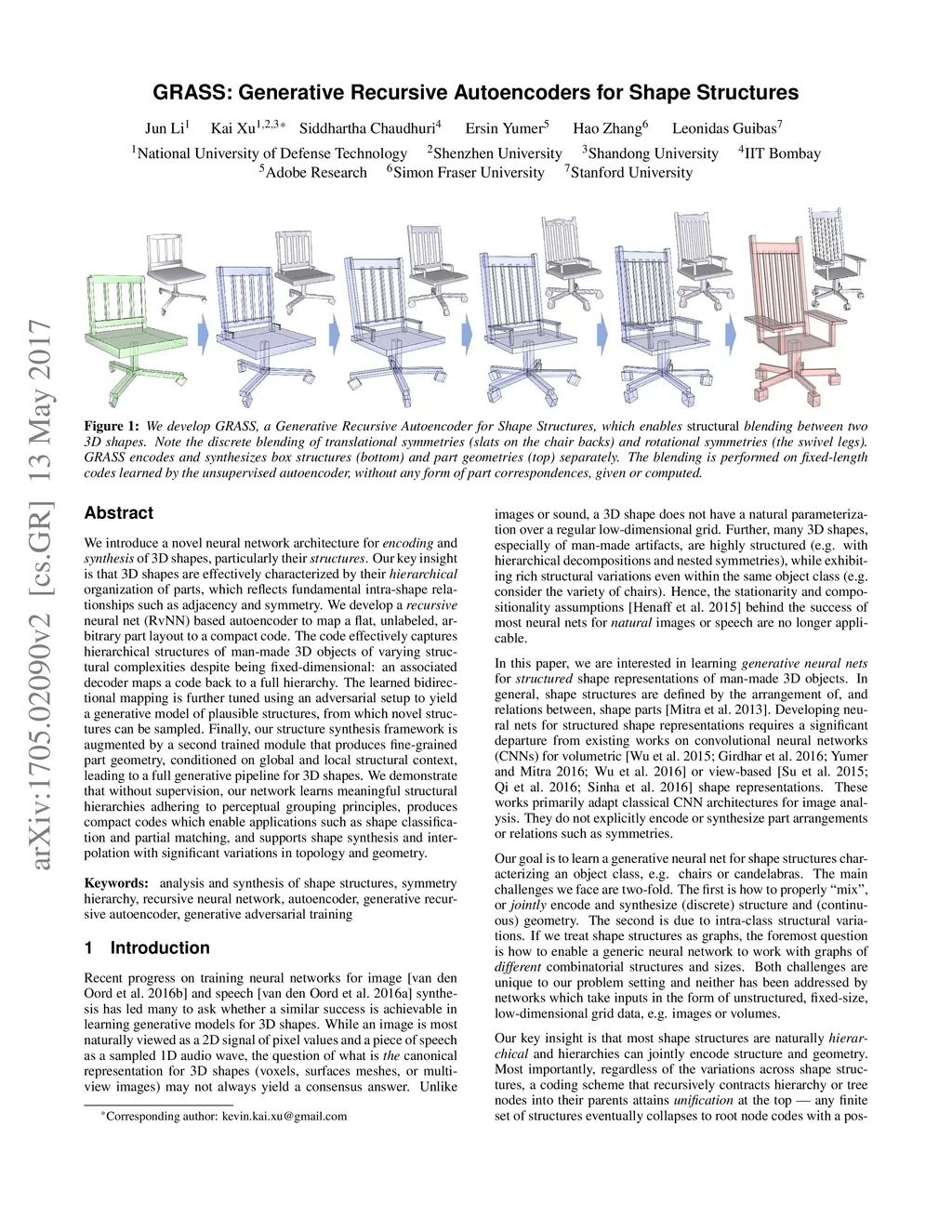GRASS: Generative Recursive Autoencoders for Shape Structures