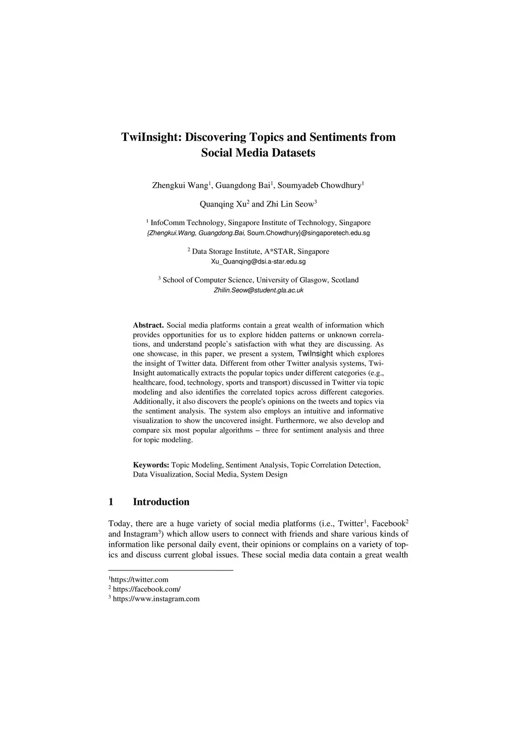 TwiInsight: Discovering Topics and Sentiments from Social Media Datasets