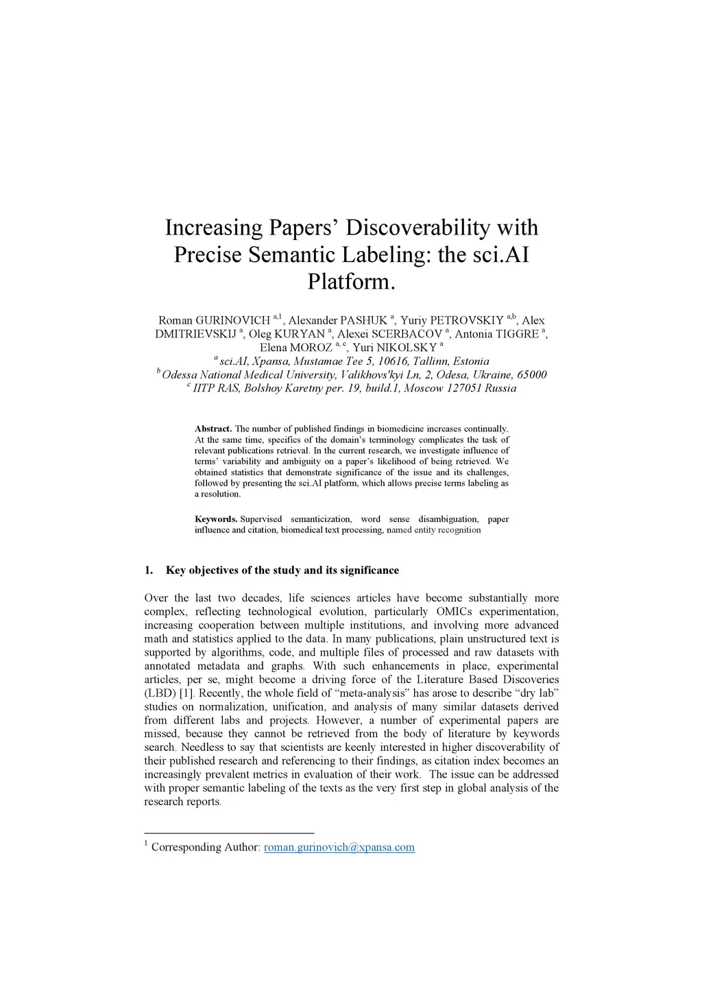 The number of published findings in biomedicine increases continually. At the same time, specifics of the domain's terminology complicates the task of relevant publications retrieval. In the current research, we investigate influence of terms' variability and ambiguity on a paper's likelihood of being retrieved. We obtained statistics that demonstrate significance of the issue and its challenges, followed by presenting the sci.AI platform, which allows precise terms labeling as a resolution.