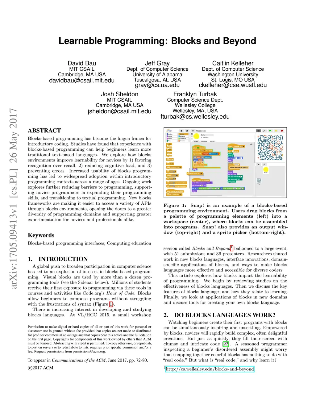 Blocks-based programming has become the lingua franca for introductory coding. Studies have found that experience with blocks-based programming can help beginners learn more traditional text-based languages. We explore how blocks environments improve learnability for novices by 1) favoring recognition over recall, 2) reducing cognitive load, and 3) preventing errors. Increased usability of blocks programming has led to widespread adoption within introductory programming contexts across a range of ages. Ongoing work explores further reducing barriers to programming, supporting novice programmers in expanding their programming skills, and transitioning to textual programming. New blocks frameworks are making it easier to access a variety of APIs through blocks environments, opening the doors to a greater diversity of programming domains and supporting greater experimentation for novices and professionals alike.