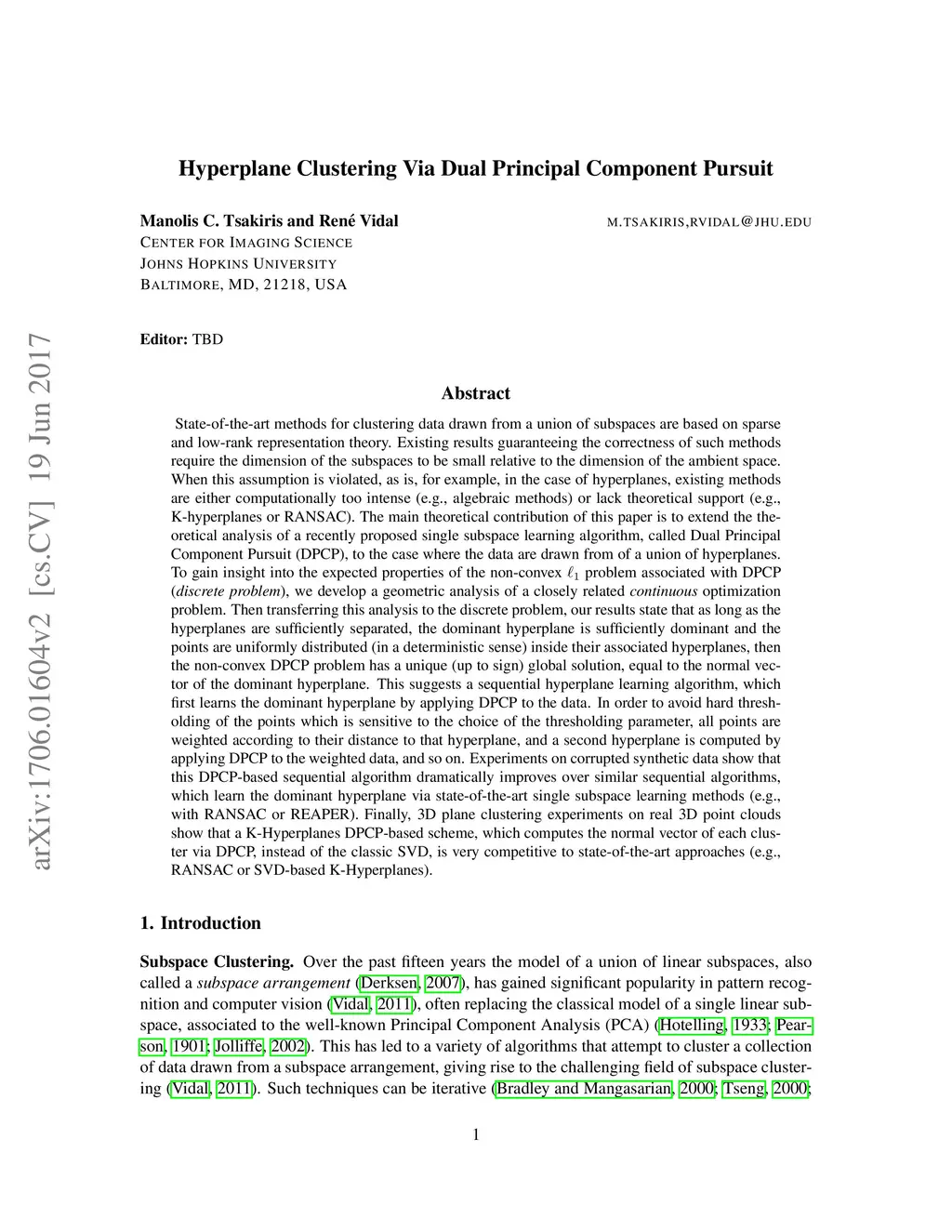 We extend the theoretical analysis of a recently proposed single subspace learning algorithm, called Dual Principal Component Pursuit (DPCP), to the case where the data are drawn from of a union of hyperplanes. To gain insight into the properties of the non-convex problem associated with DPCP, we develop a geometric analysis of a closely related continuous optimization problem. Then transferring this analysis to the discrete problem, our results state that as long as the hyperplanes are sufficiently separated, the dominant hyperplane is sufficiently dominant and the points are uniformly distributed inside the associated hyperplanes, then the non-convex DPCP problem has a unique global solution, equal to the normal vector of the dominant hyperplane. This suggests the correctness of a sequential hyperplane learning algorithm based on DPCP. A thorough experimental evaluation reveals that hyperplane learning schemes based on DPCP dramatically improve over the state-of-the-art methods for the case of synthetic data, while are competitive to the state-of-the-art in the case of 3D plane clustering for Kinect data.