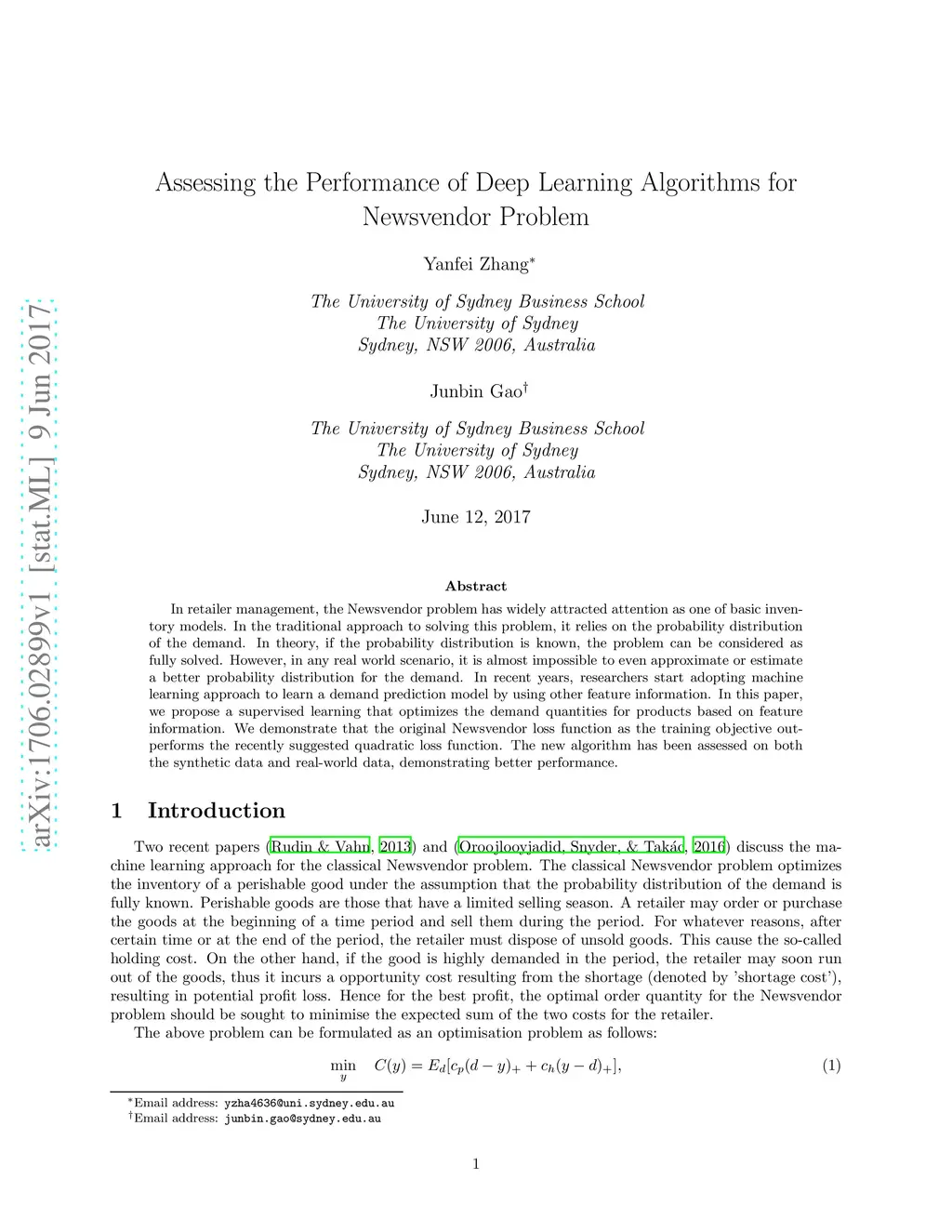 In retailer management, the Newsvendor problem has widely attracted attention as one of basic inventory models. In the traditional approach to solving this problem, it relies on the probability distribution of the demand. In theory, if the probability distribution is known, the problem can be considered as fully solved. However, in any real world scenario, it is almost impossible to even approximate or estimate a better probability distribution for the demand. In recent years, researchers start adopting machine learning approach to learn a demand prediction model by using other feature information. In this paper, we propose a supervised learning that optimizes the demand quantities for products based on feature information. We demonstrate that the original Newsvendor loss function as the training objective outperforms the recently suggested quadratic loss function. The new algorithm has been assessed on both the synthetic data and real-world data, demonstrating better performance.