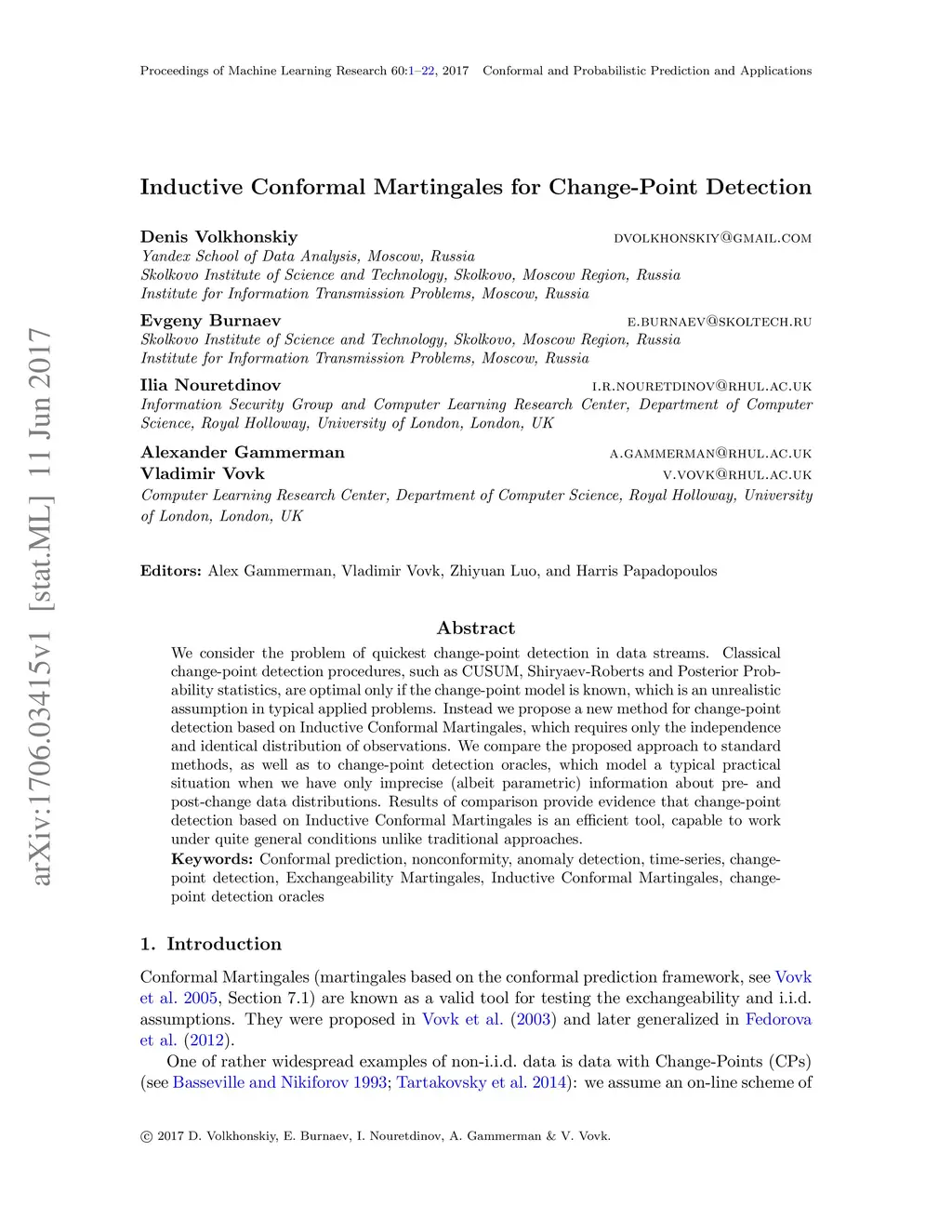 We consider the problem of quickest change-point detection in data streams. Classical change-point detection procedures, such as CUSUM, Shiryaev-Roberts and Posterior Probability statistics, are optimal only if the change-point model is known, which is an unrealistic assumption in typical applied problems. Instead we propose a new method for change-point detection based on Inductive Conformal Martingales, which requires only the independence and identical distribution of observations. We compare the proposed approach to standard methods, as well as to change-point detection oracles, which model a typical practical situation when we have only imprecise (albeit parametric) information about pre- and post-change data distributions. Results of comparison provide evidence that change-point detection based on Inductive Conformal Martingales is an efficient tool, capable to work under quite general conditions unlike traditional approaches.